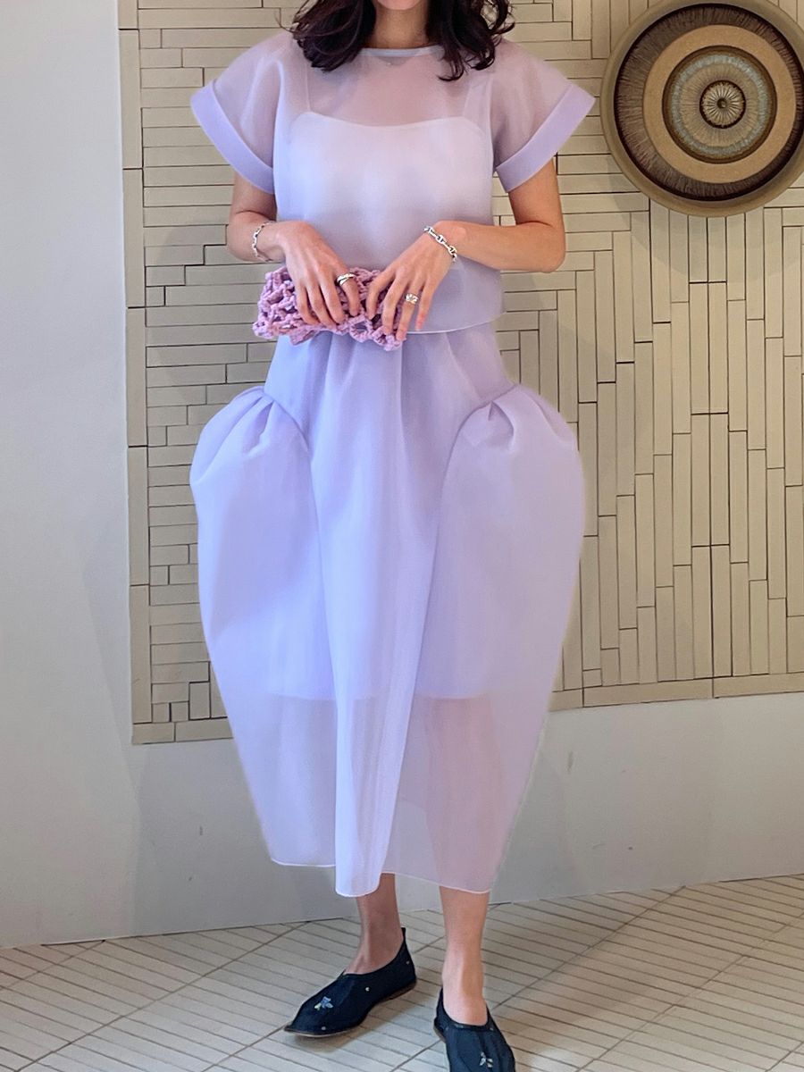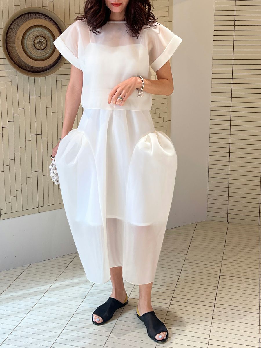 スウィートな雰囲気にシアー素材を使用する事でモードな印象に。