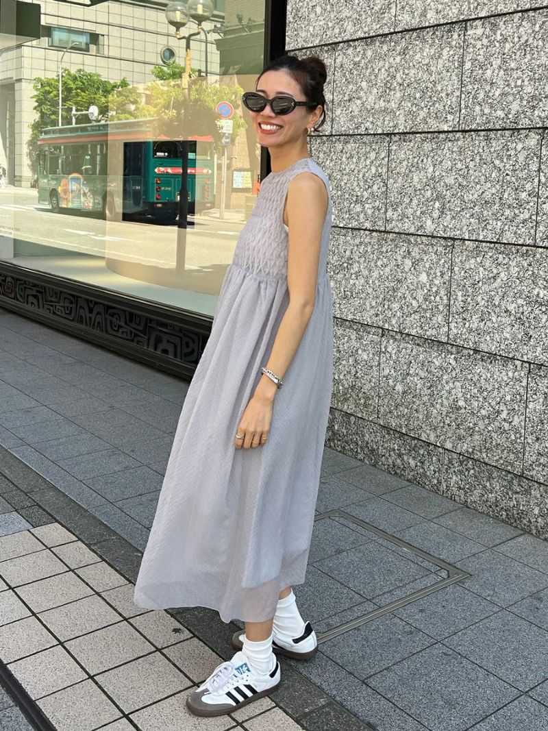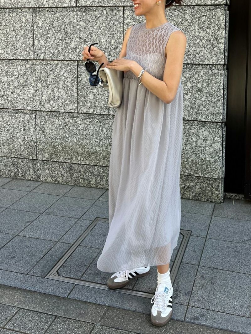 適度なカジュアル感と素材の持ち味により甘くなり過ぎず、大人の女性らしい雰囲気が魅力のワンピース。