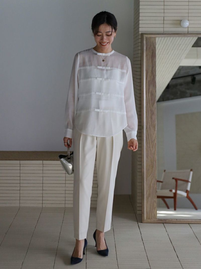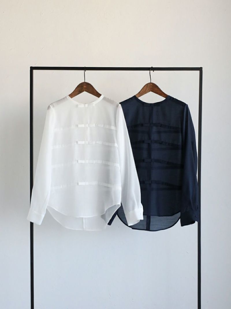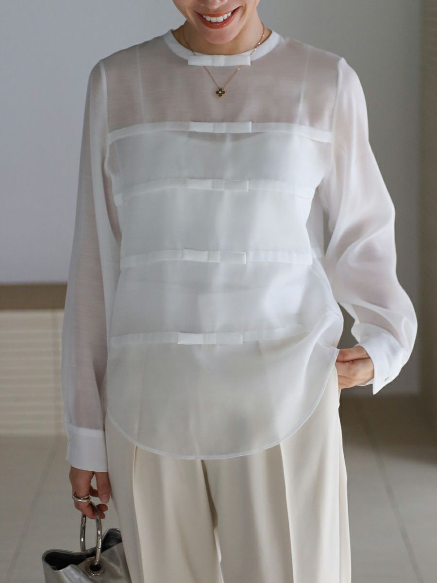 透明感ある表情豊かな素材が軽やかな雰囲気に仕上げるプルオーバーブラウス。