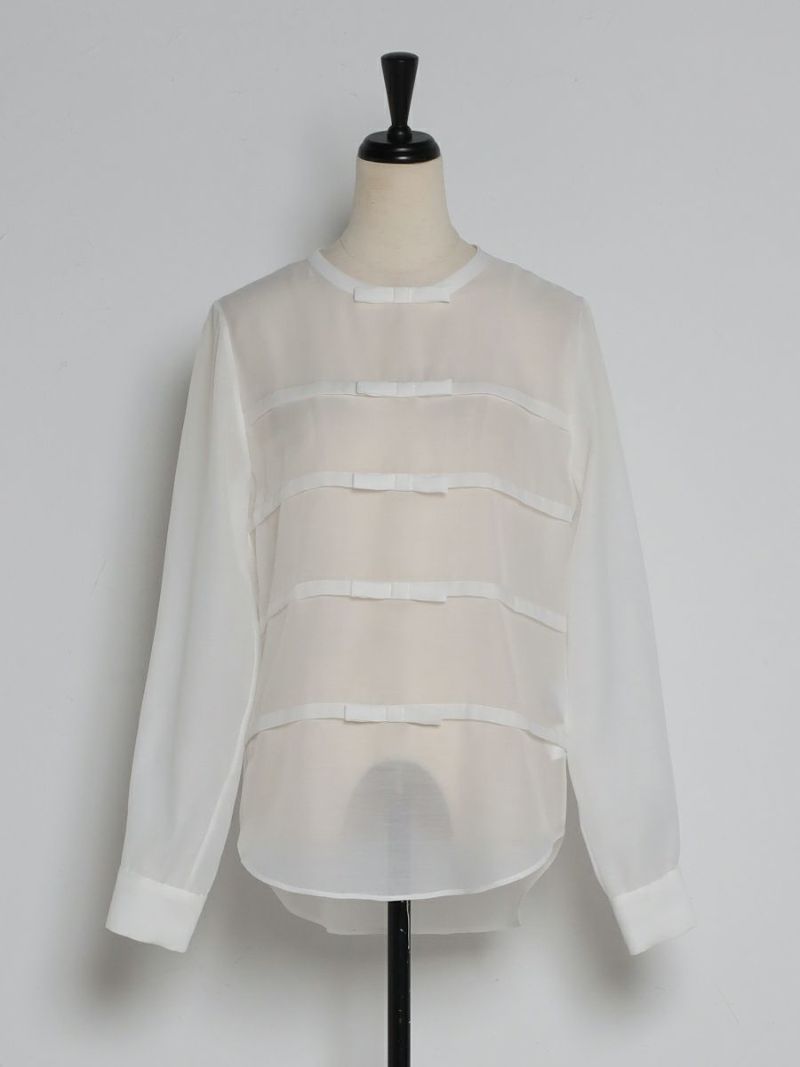 甘くなりすぎないリボンデザインがポイントでシンプルな中にさりげないアクセントが詰まった一着です。