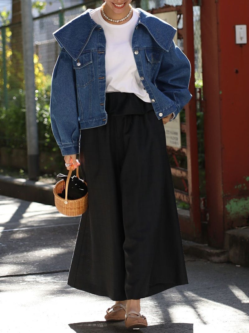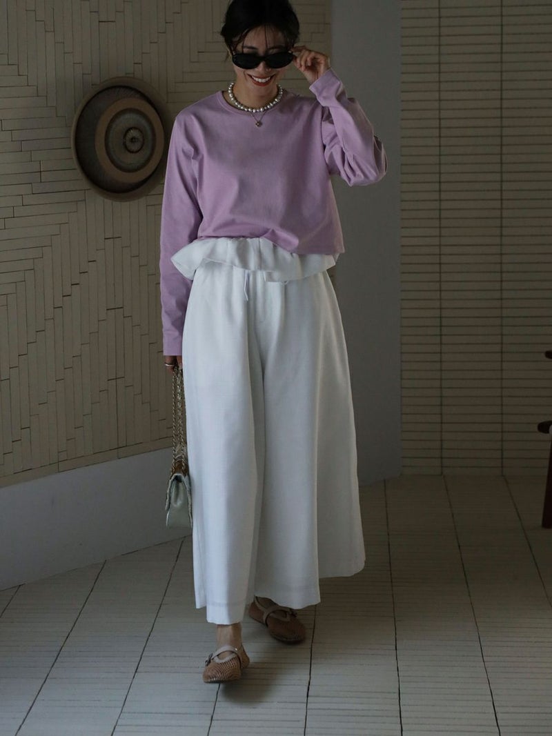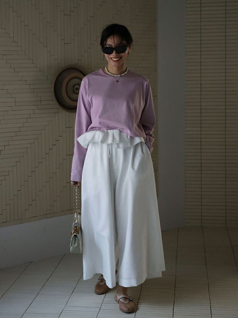 サンダルやフラットシューズとも相性抜群で、オンオフ問わず幅広い着こなしをお楽しみいただける一着です。