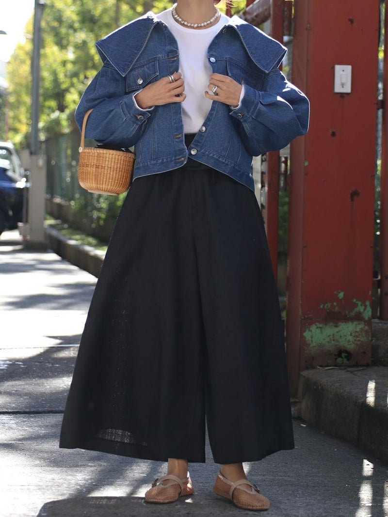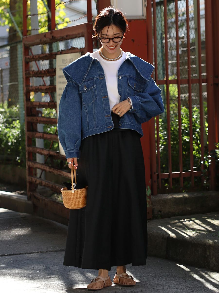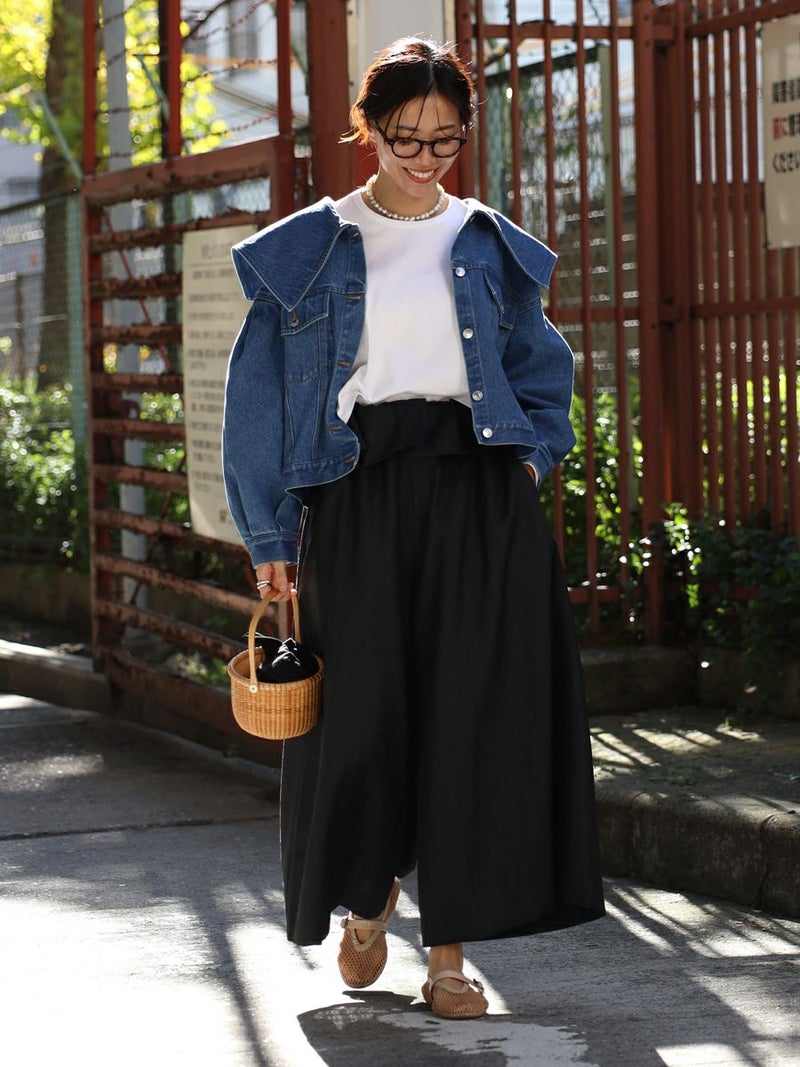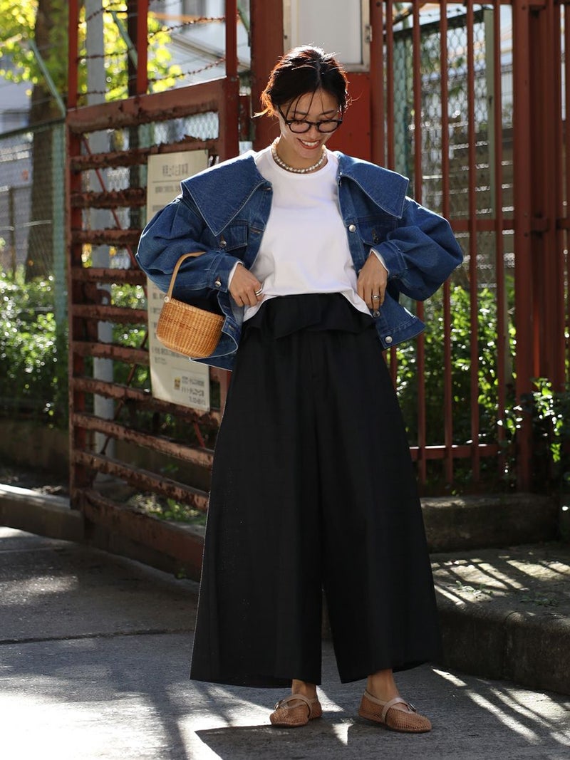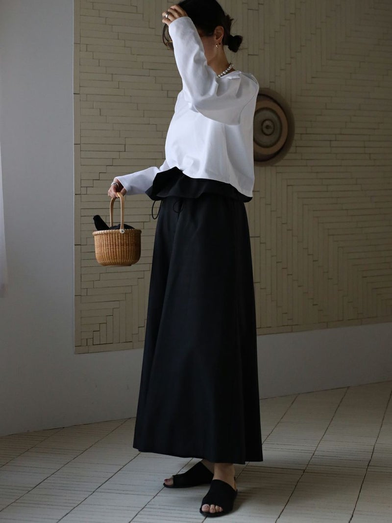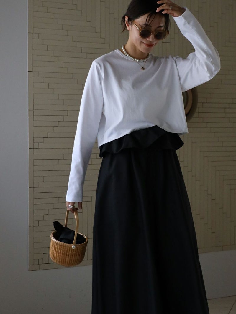 コンパクトなトップスをタックインするのはもちろん、オーバーシルエットのトップスやブラウスを合わせたスタイリングもおすすめです。