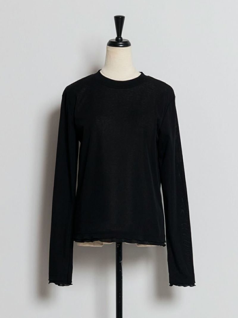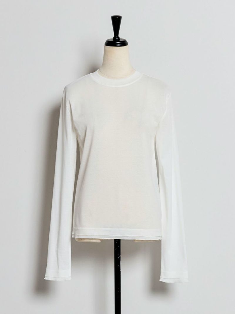 インナーとして重宝するやや透け感のある厚みが特徴のロングスリーブトップス。