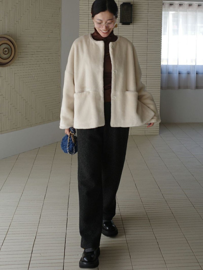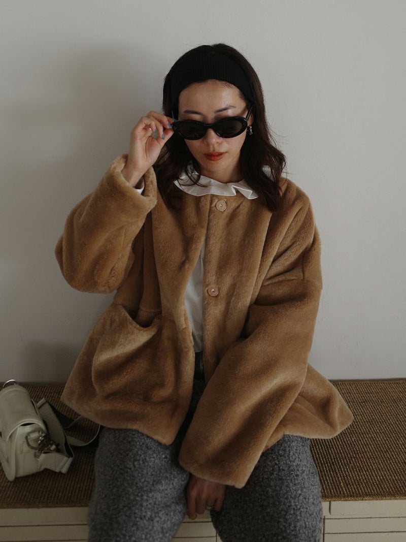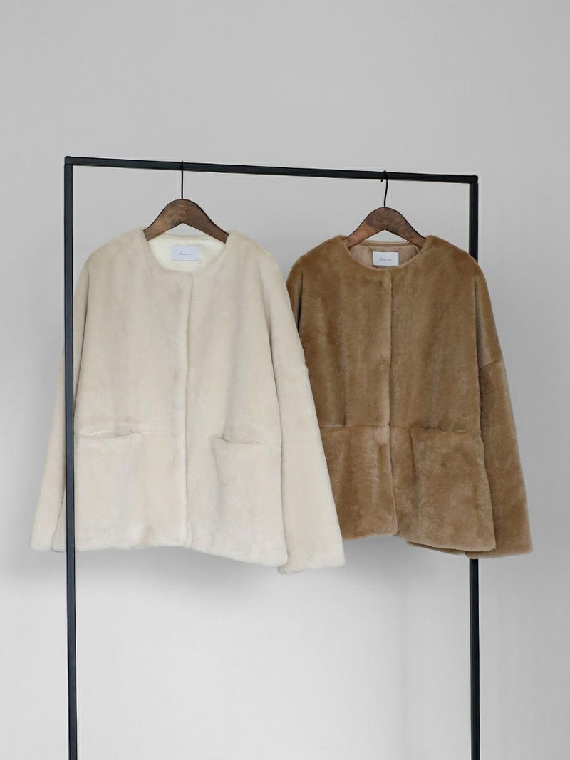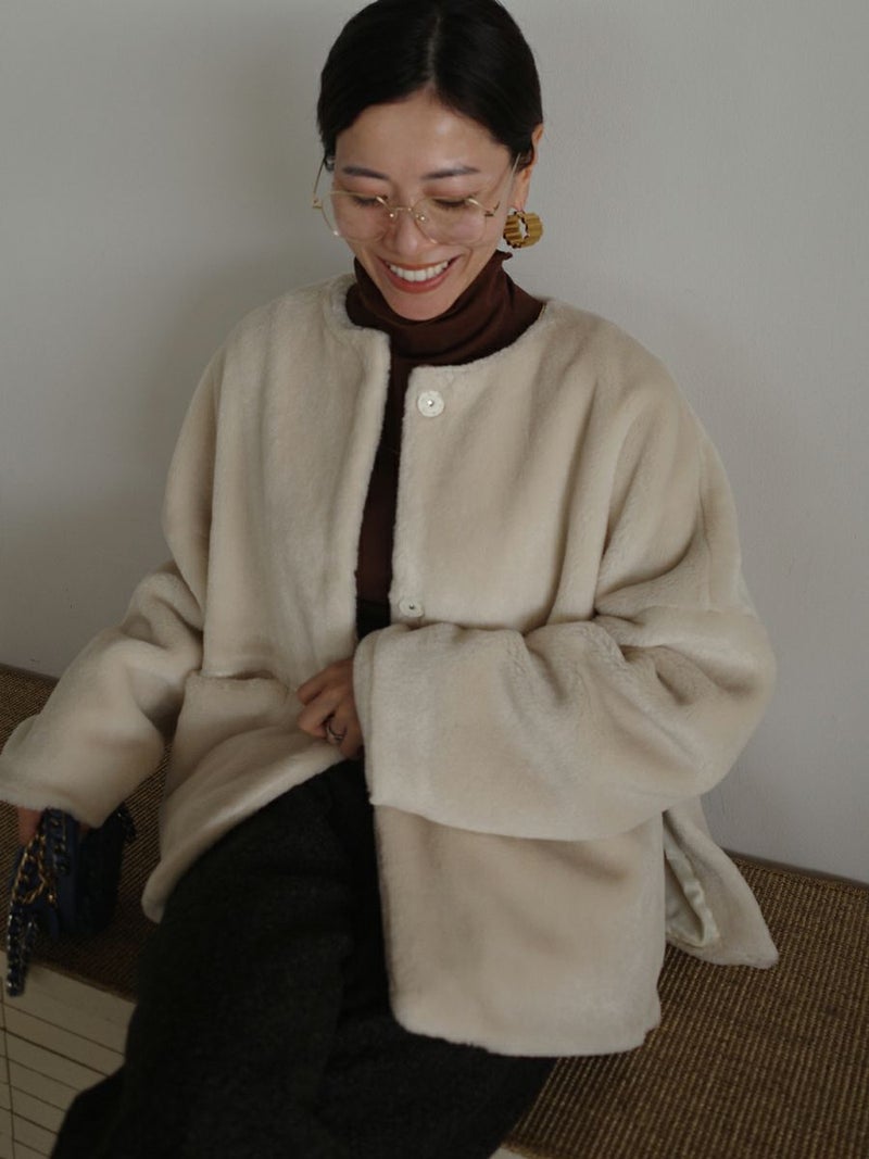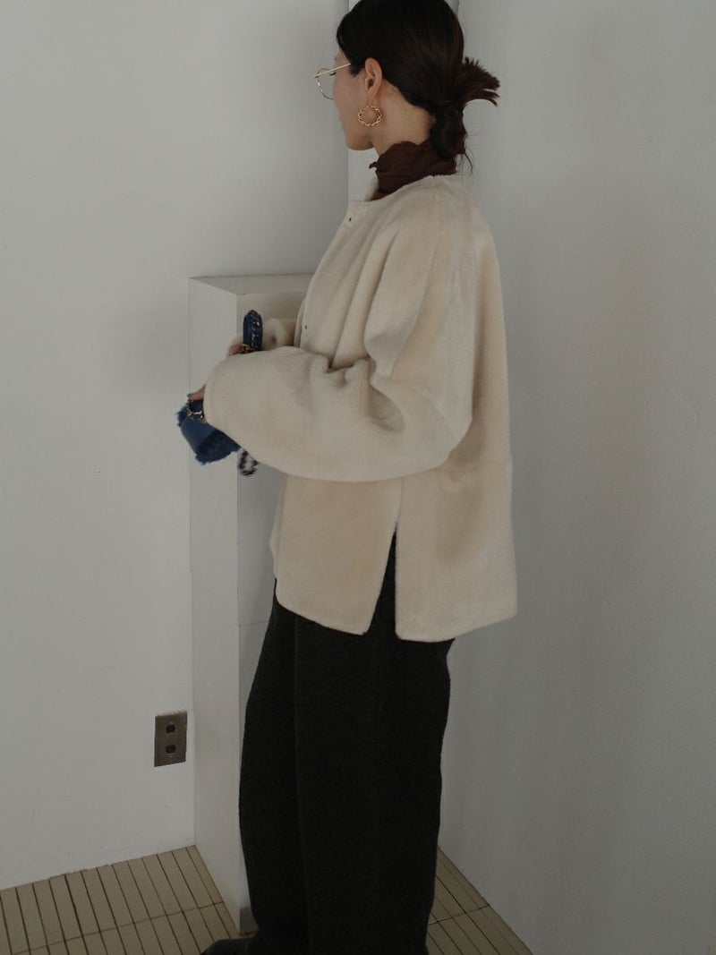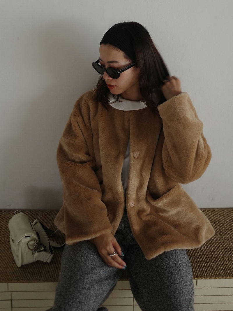 柔らかく上質な肌触りのフェイクファー素材を仕様したジャケット。