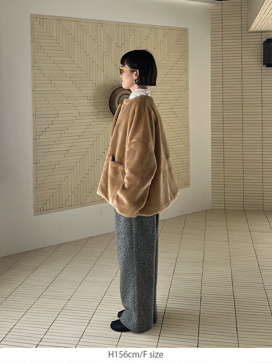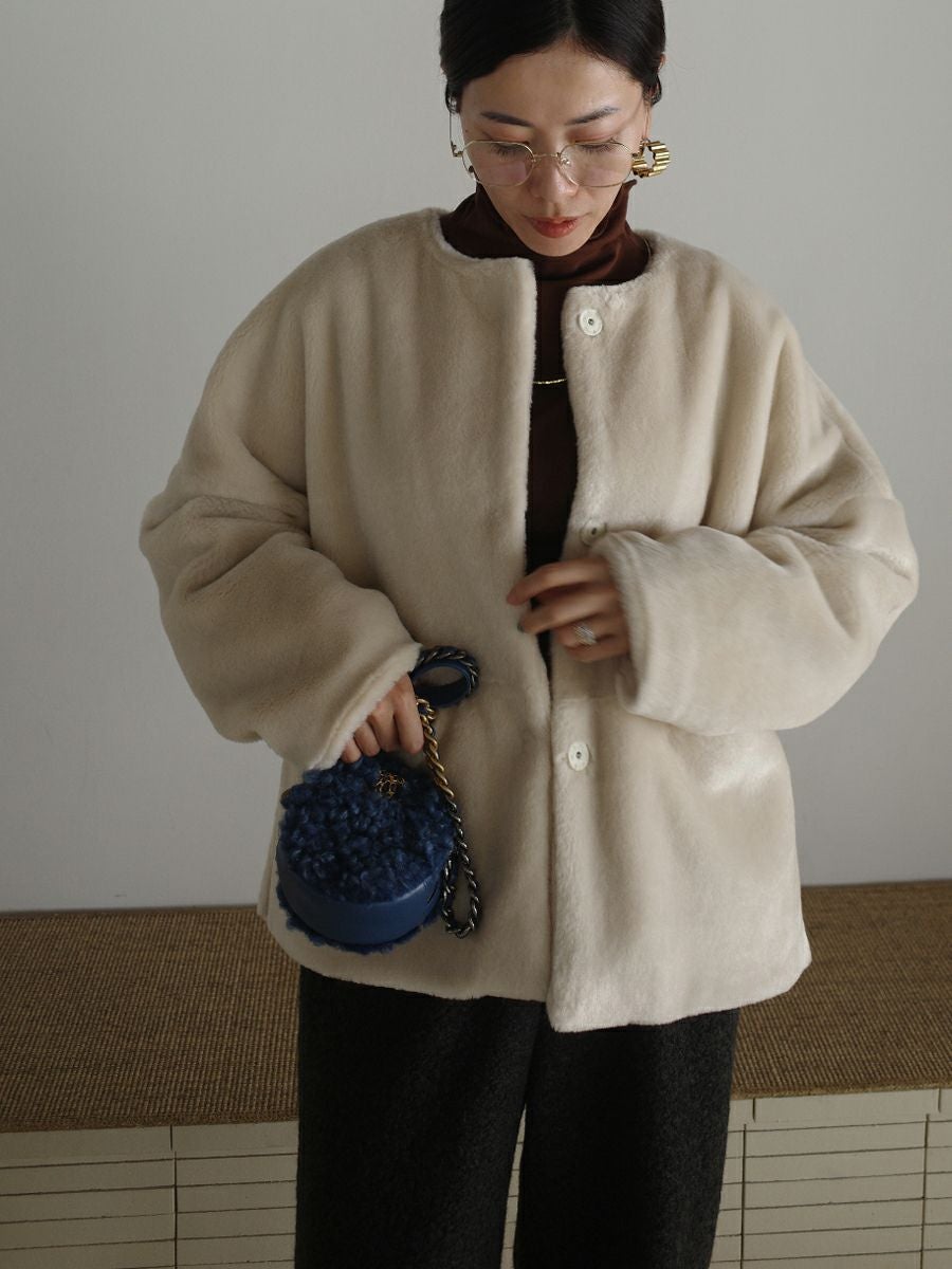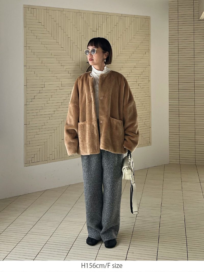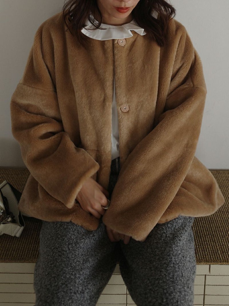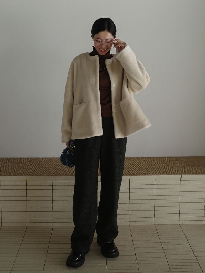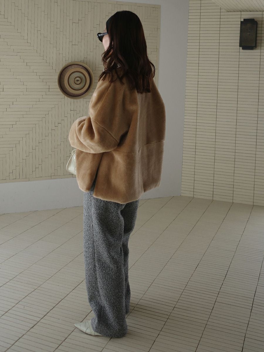 柔らかく上質な肌触りのフェイクファー素材を仕様したジャケット。