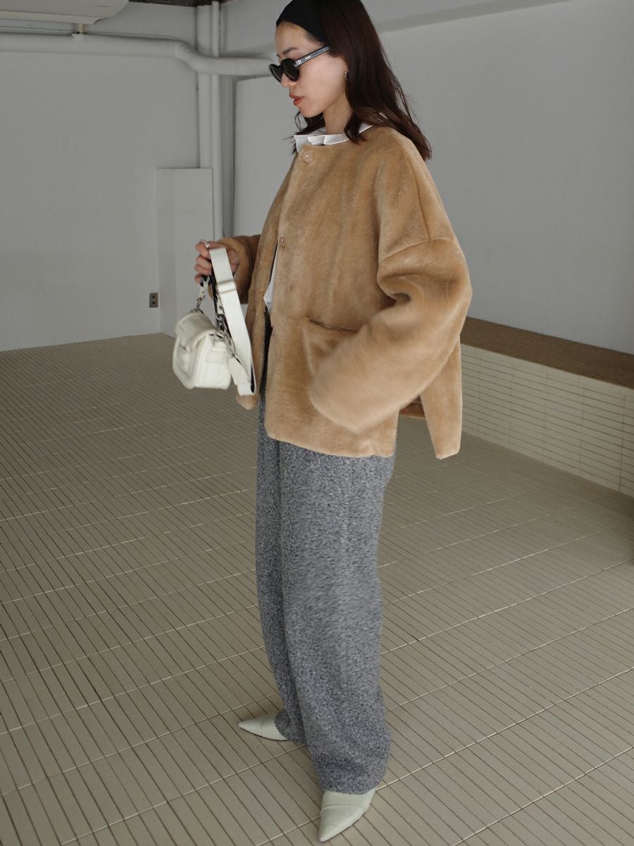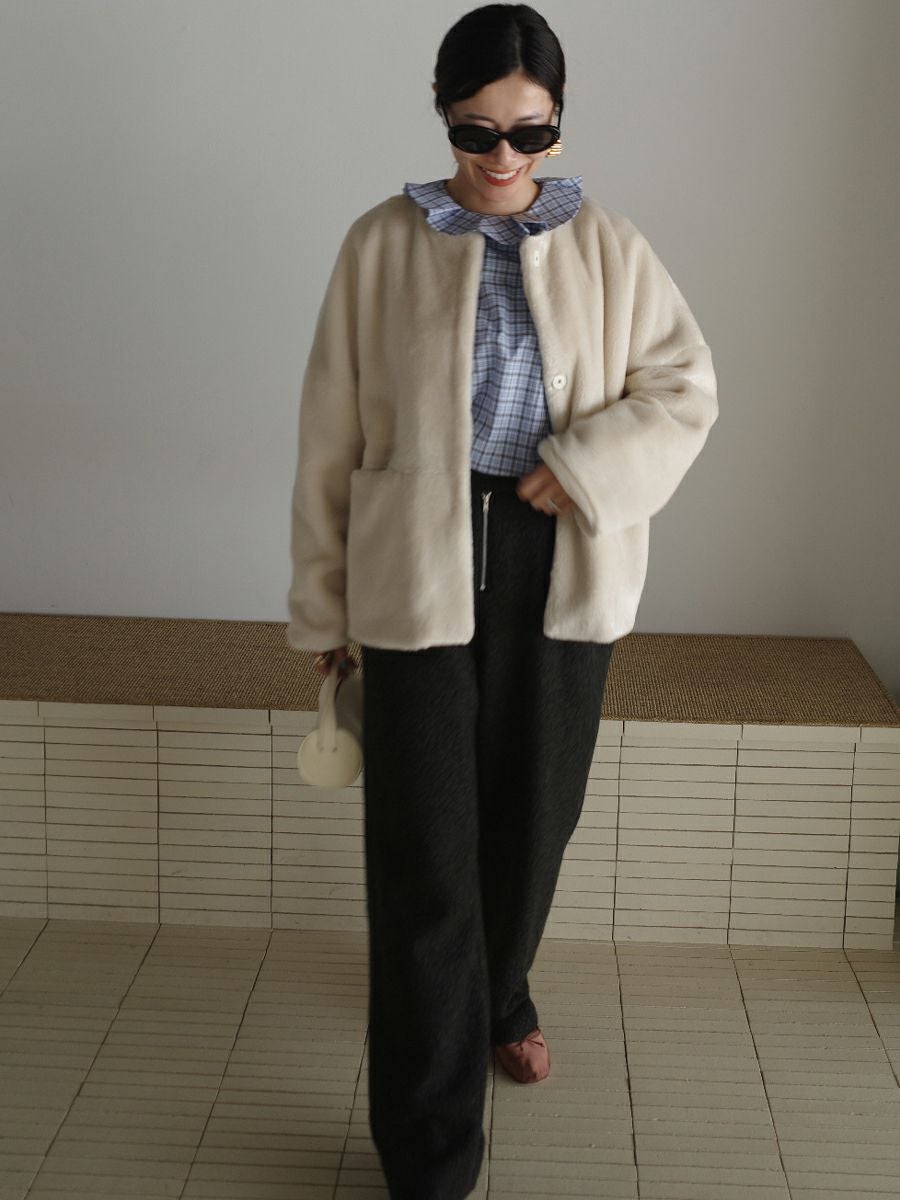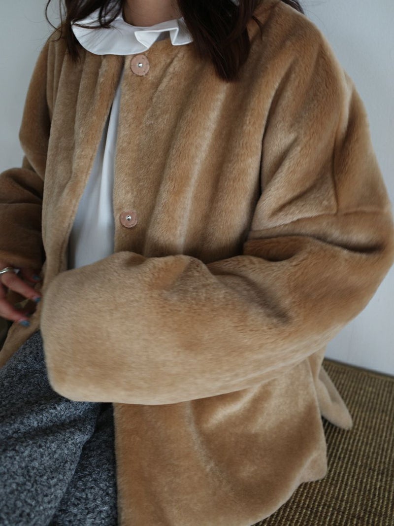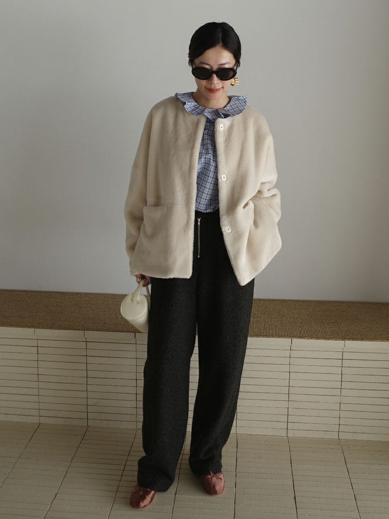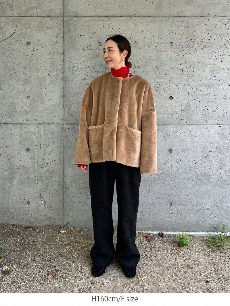 柔らかく上質な肌触りのフェイクファー素材を仕様したジャケット。