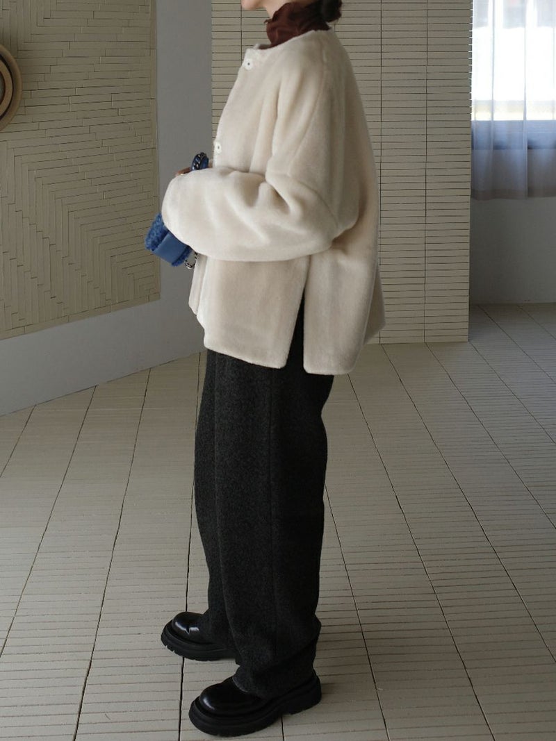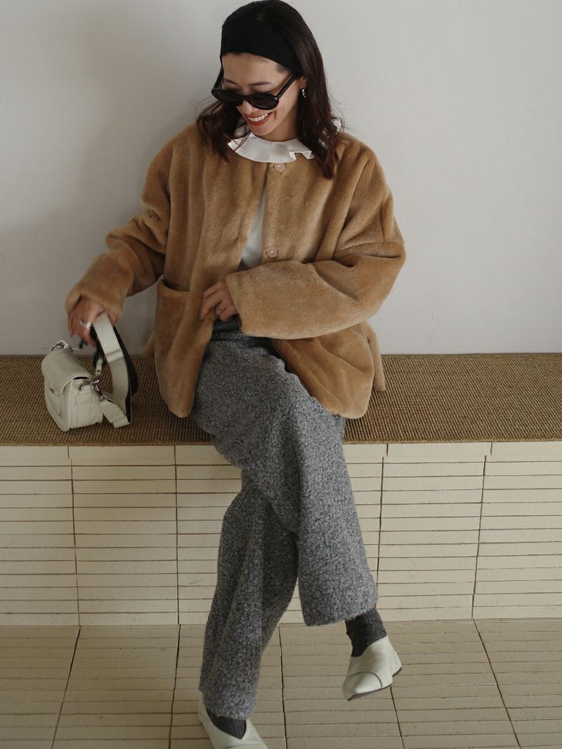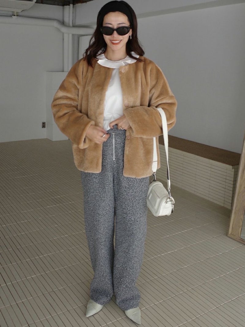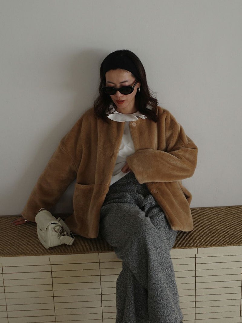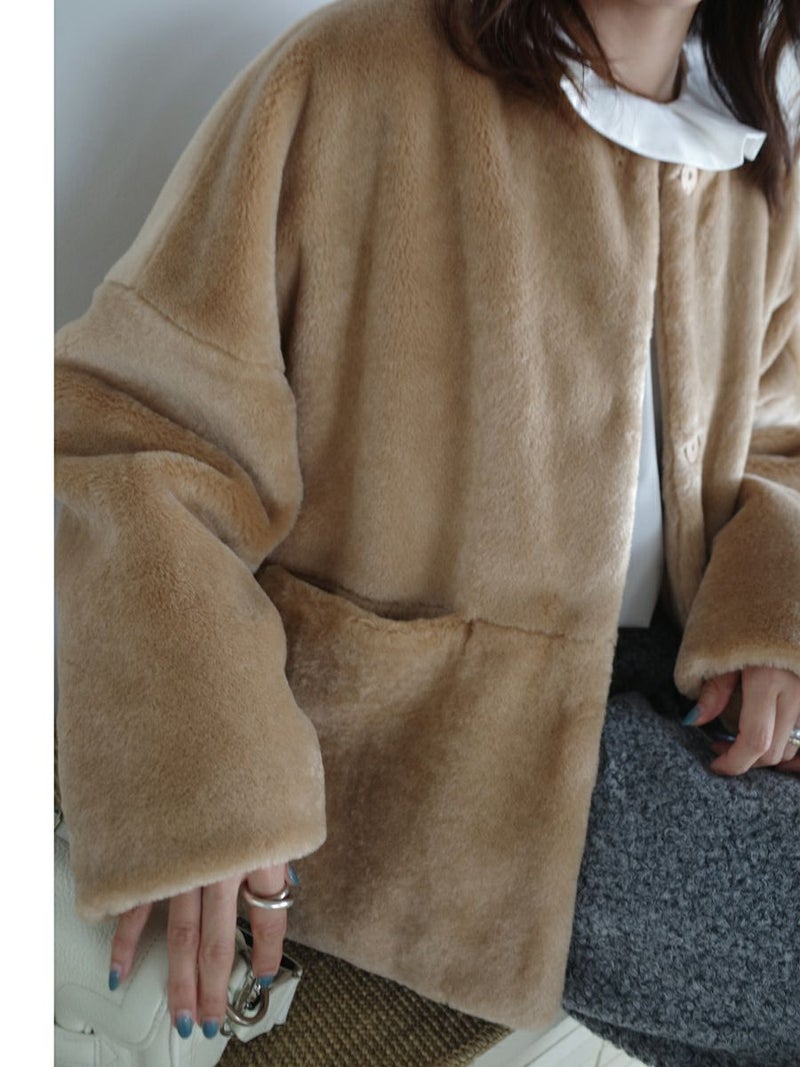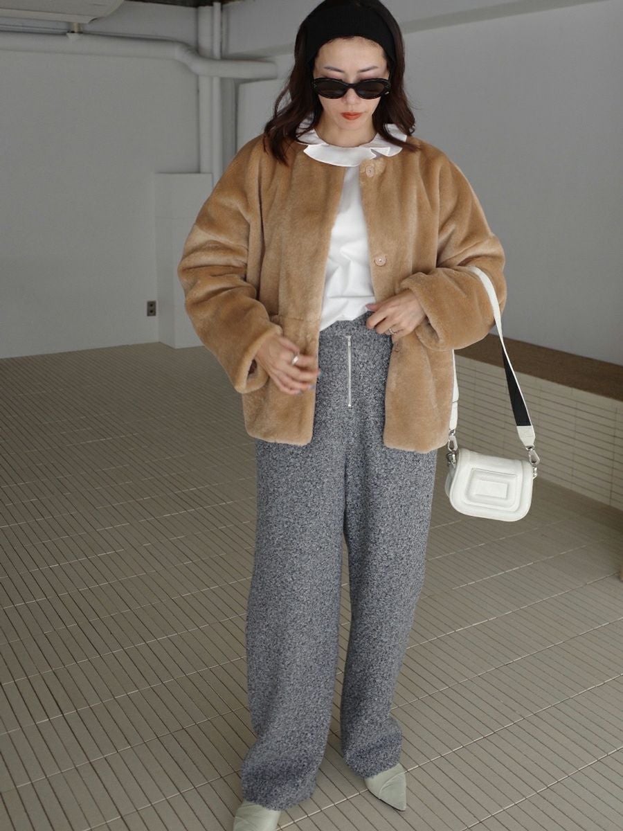 柔らかく上質な肌触りのフェイクファー素材を仕様したジャケット。