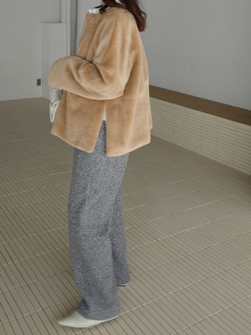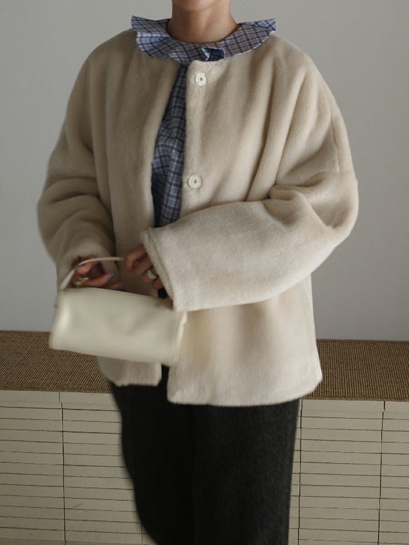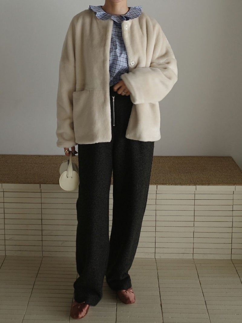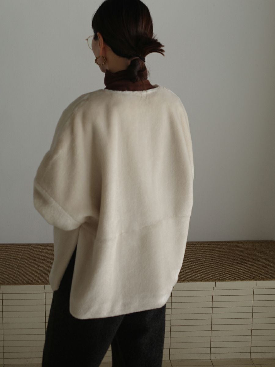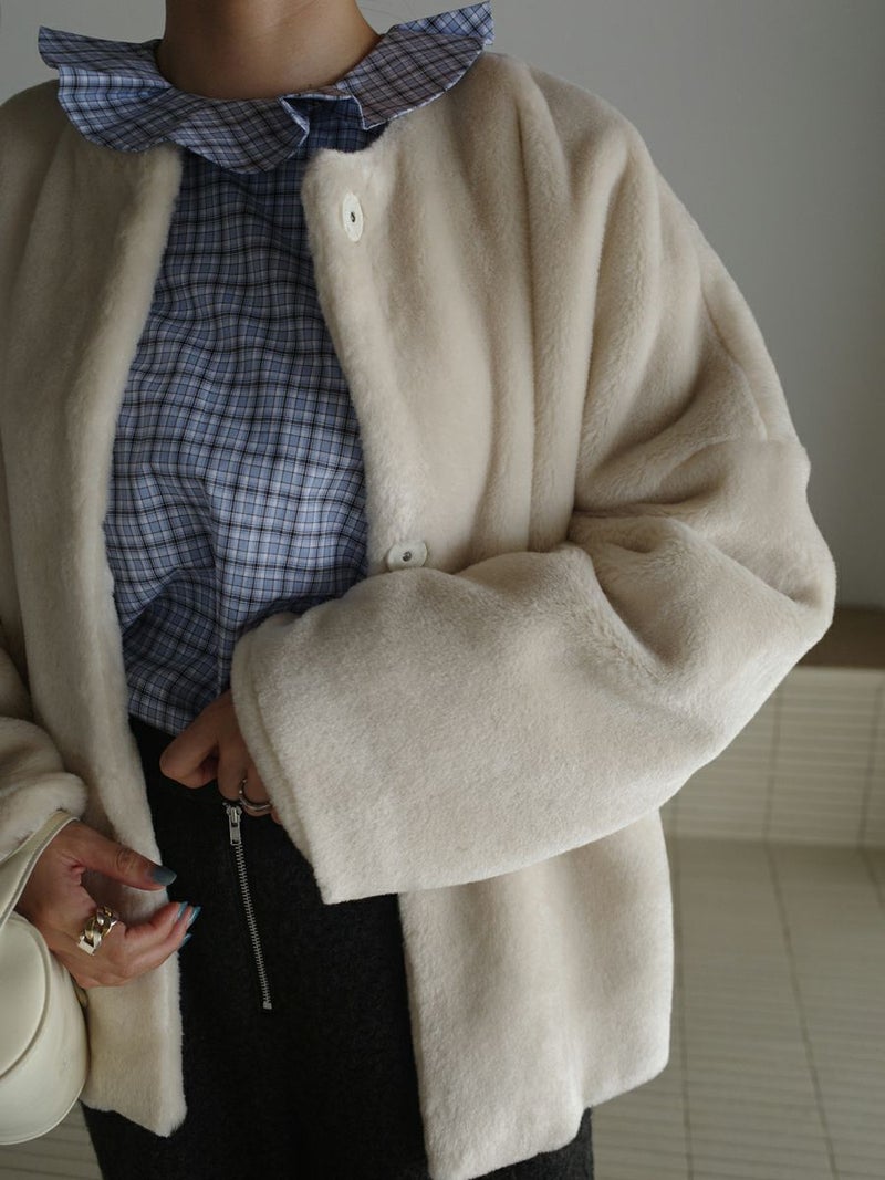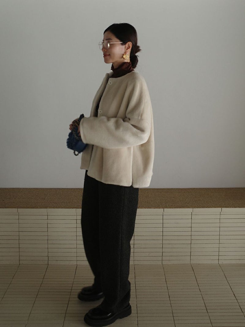 柔らかく上質な肌触りのフェイクファー素材を仕様したジャケット。
