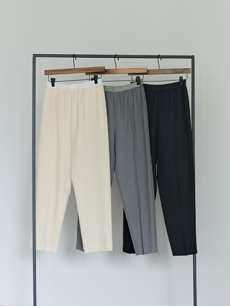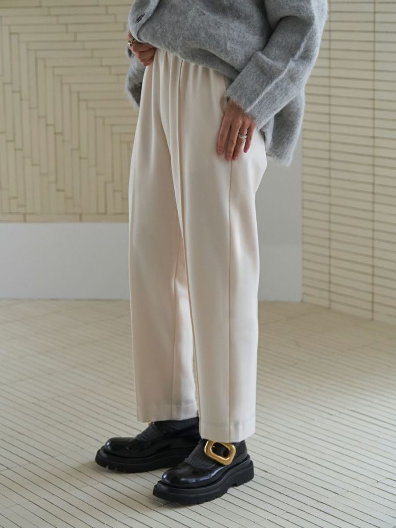 フィットし過ぎず体のラインをひろわない美しいシルエットでお召しいただけるよう履き心地の良さとラインの綺麗さを追求しました。