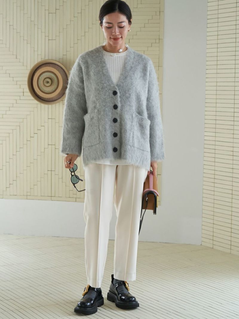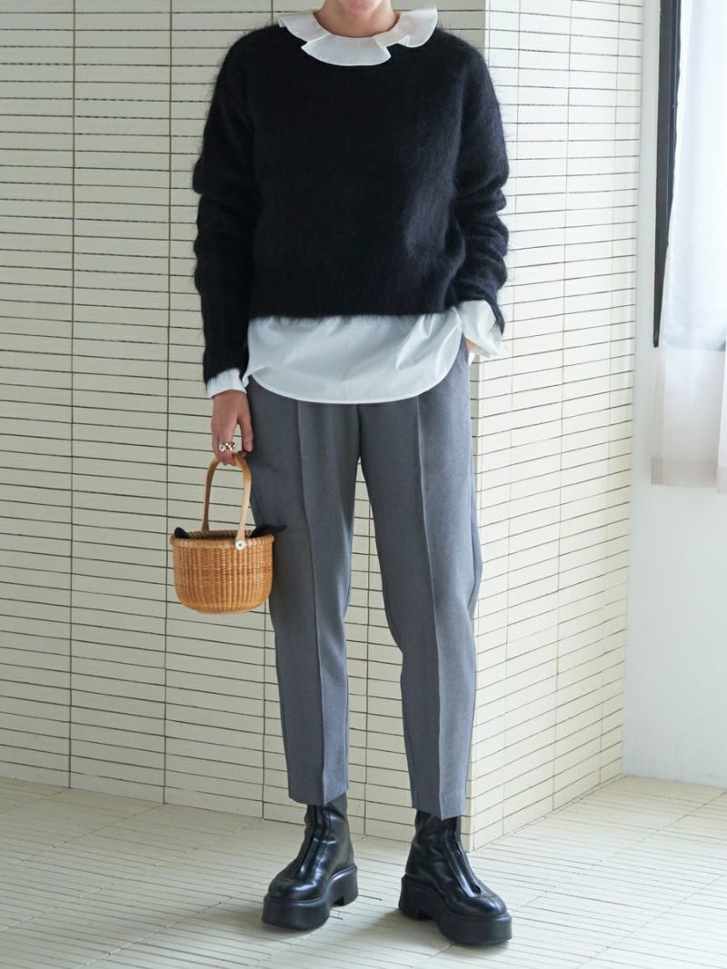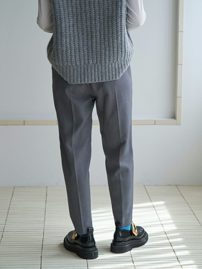 羽毛感のある糸を織り込み、独特のウォームタッチを表現したテーパードパンツ。