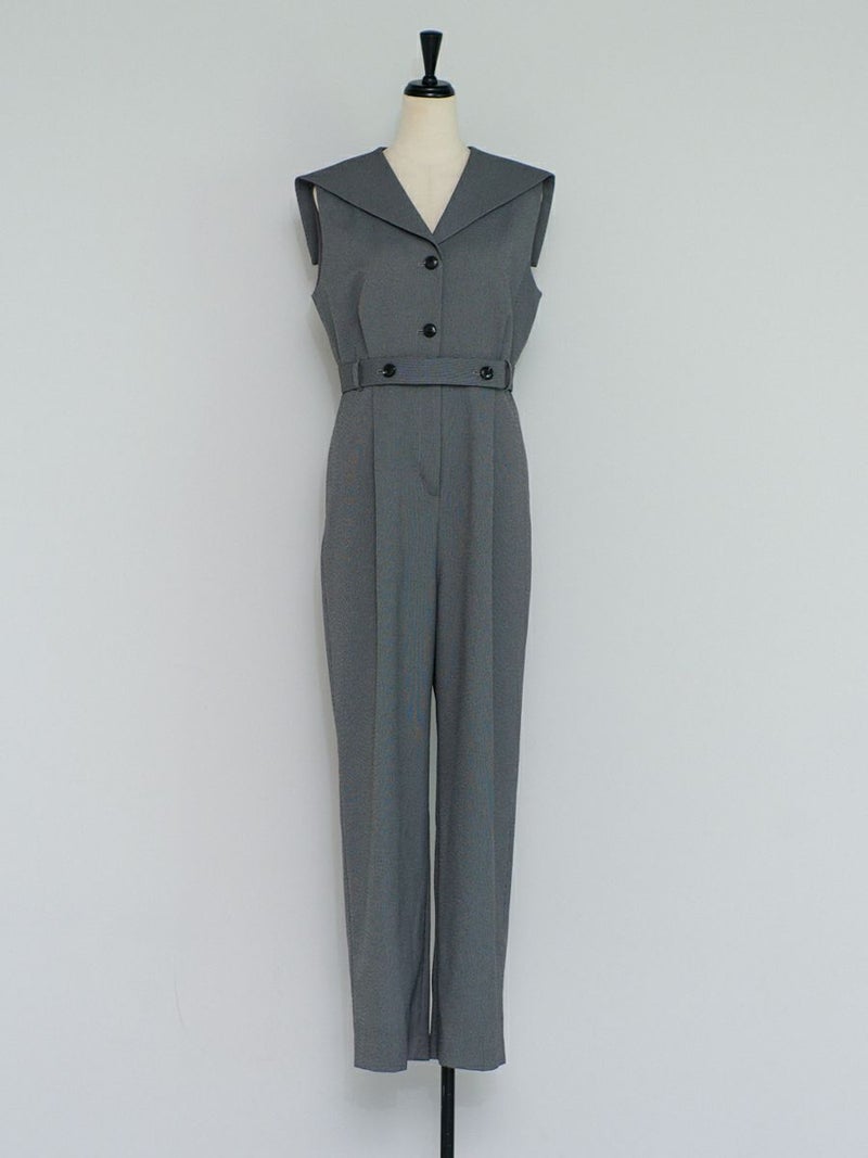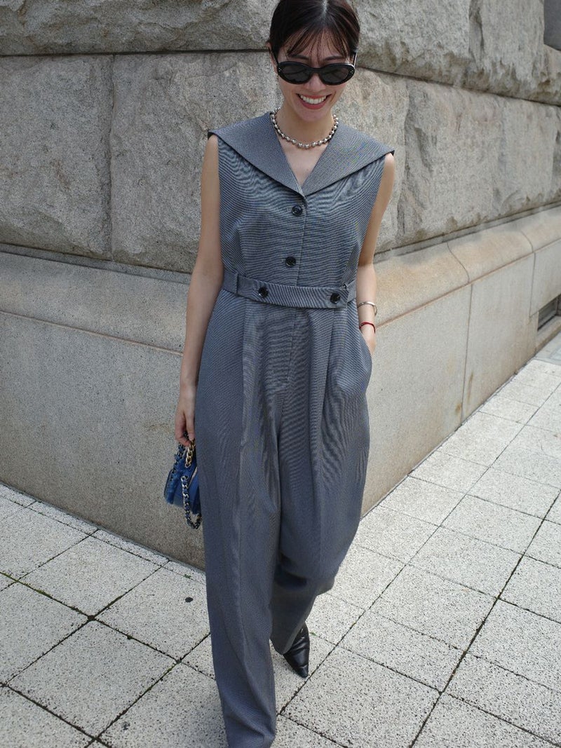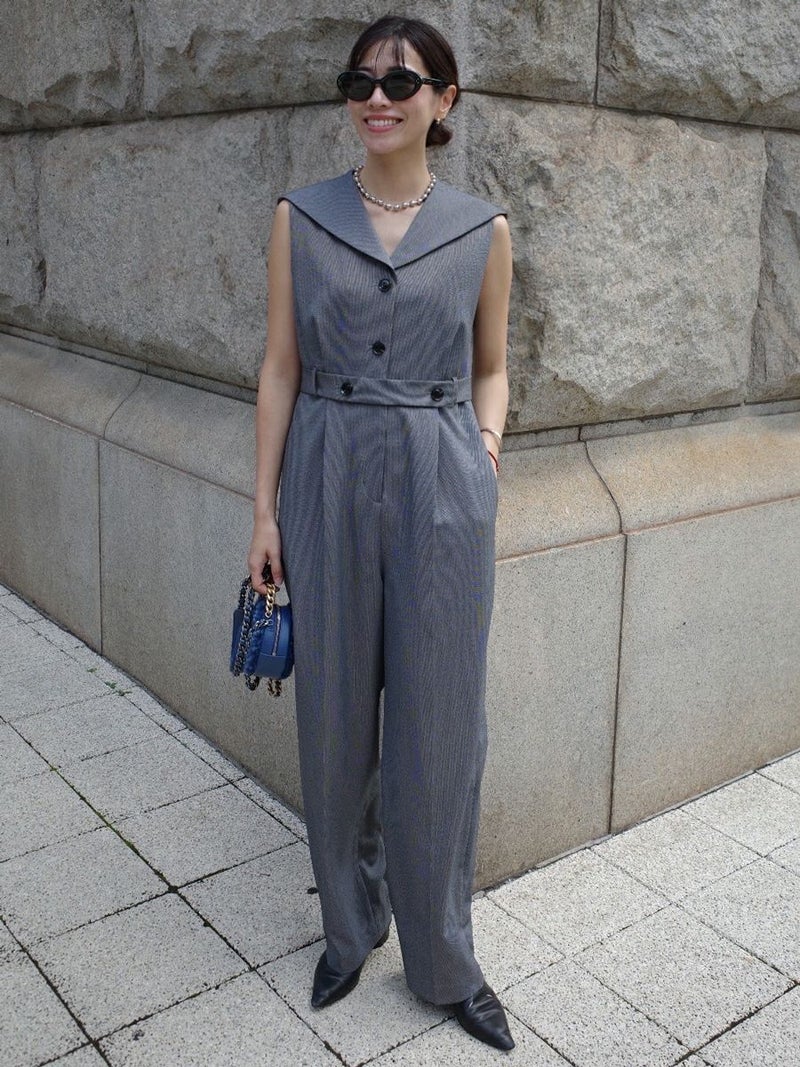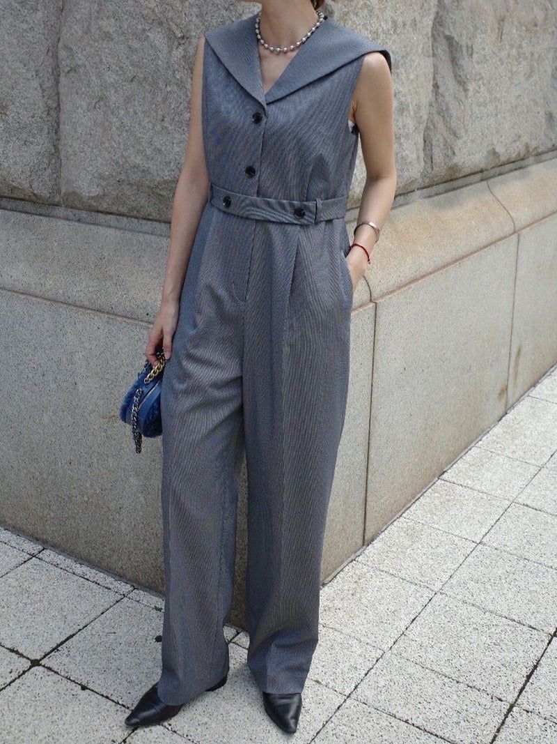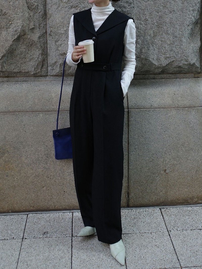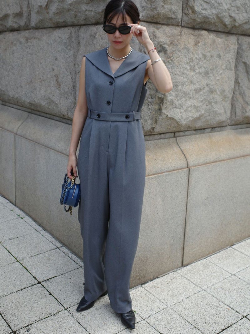 セーラーカラーをシャープに落とし込んだオールインワン。