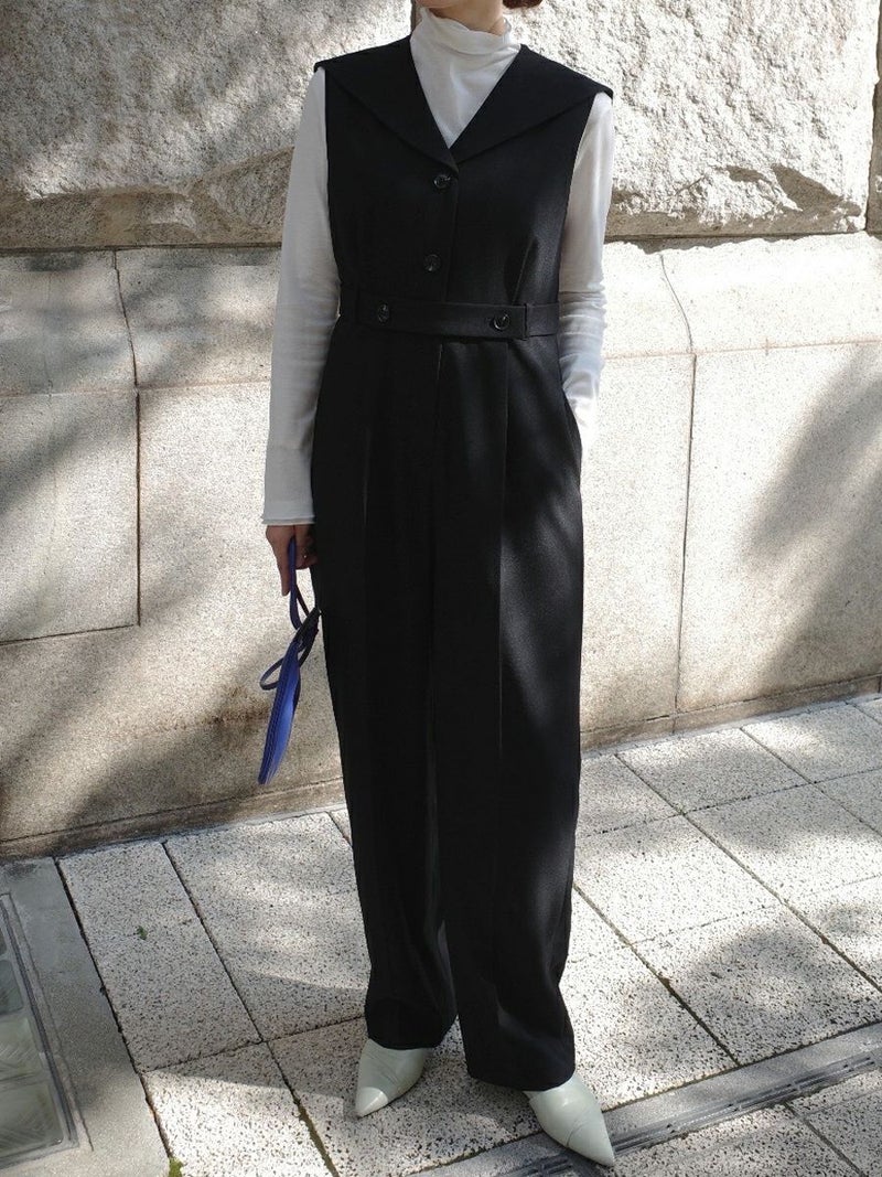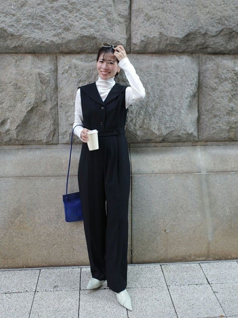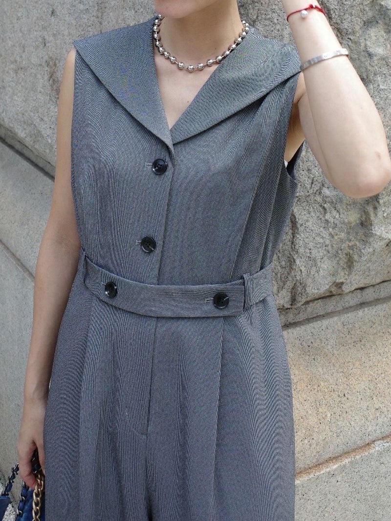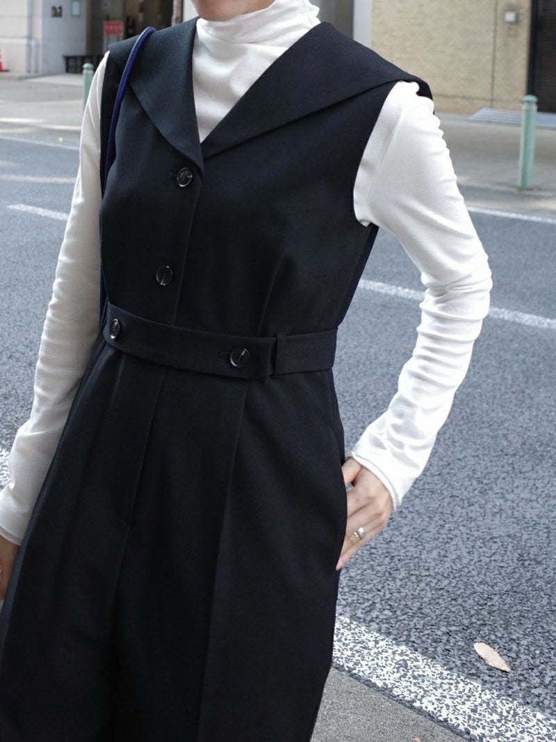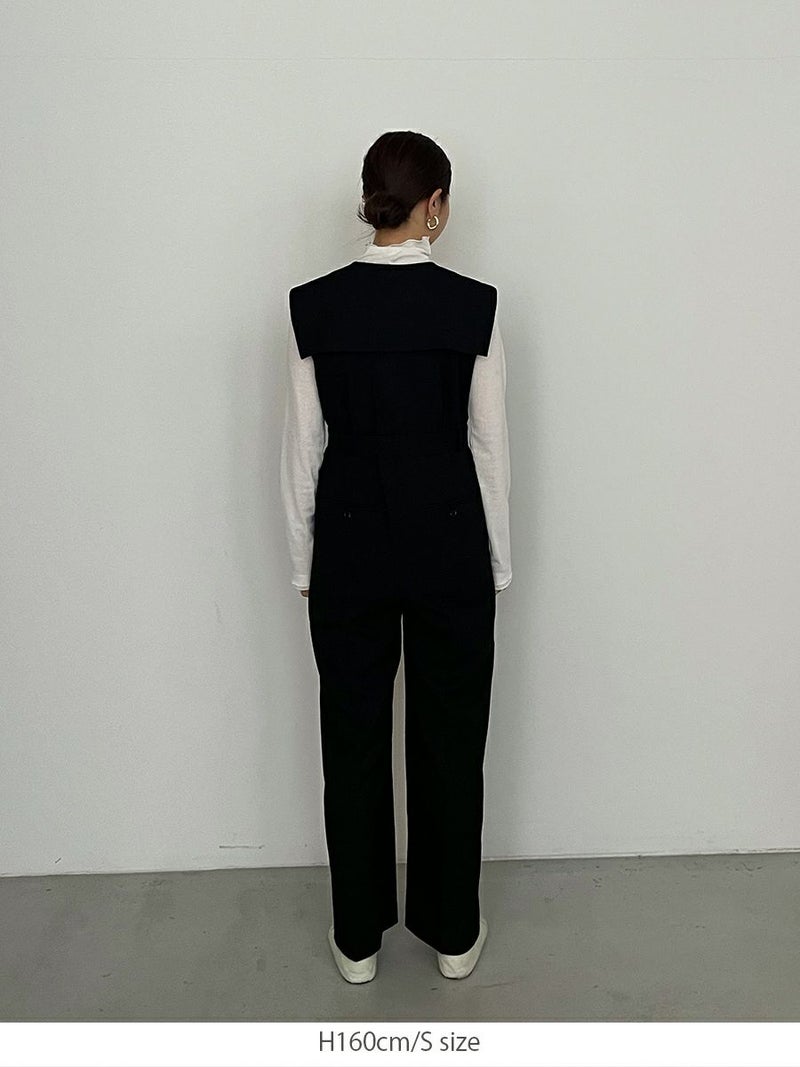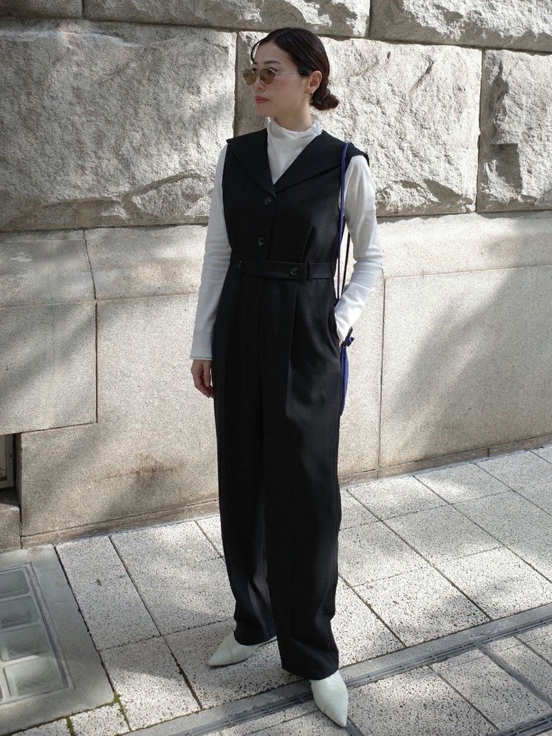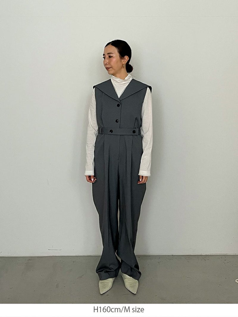 セーラーカラーをシャープに落とし込んだオールインワン。