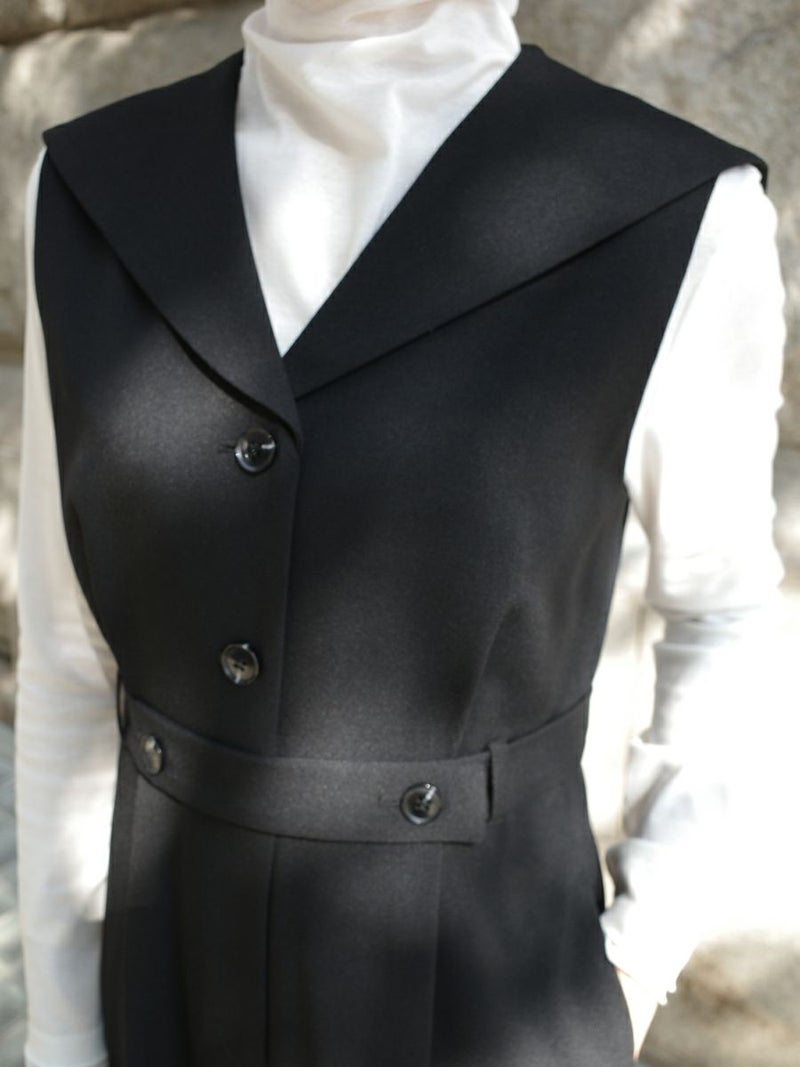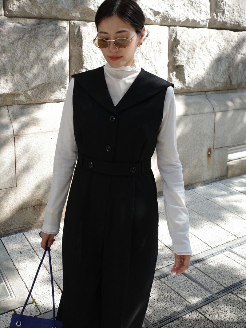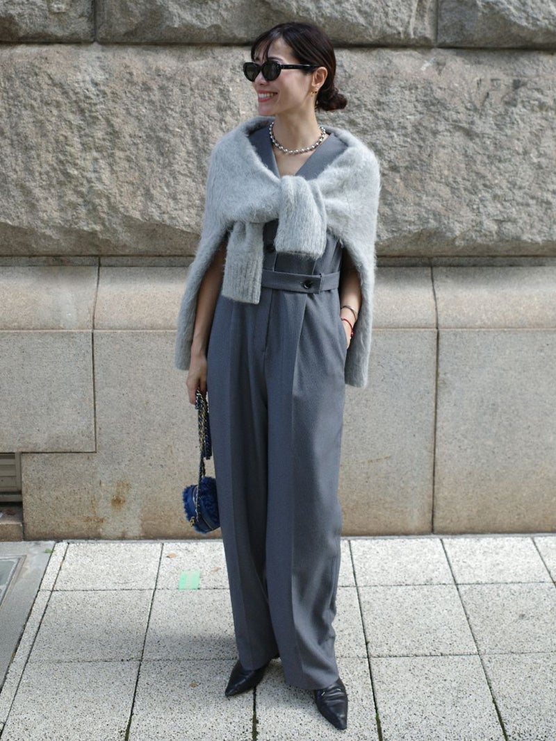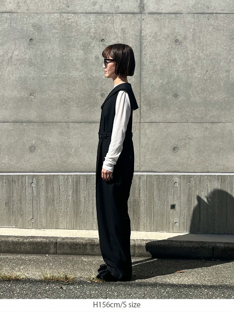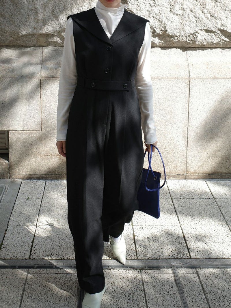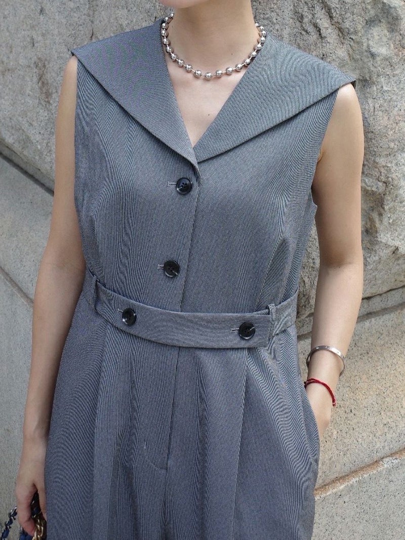 セーラーカラーをシャープに落とし込んだオールインワン。