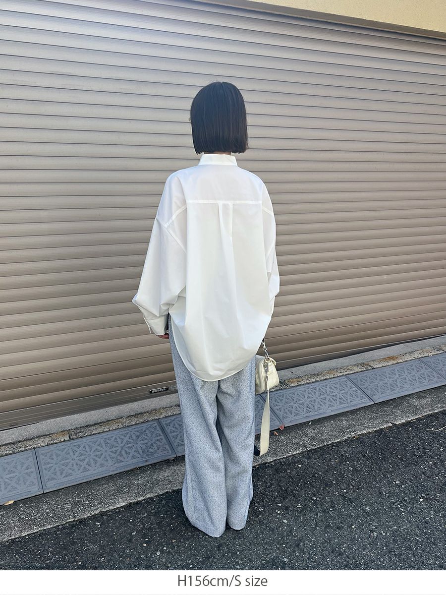 ツータックの入ったセミワイドシルエットは、腰まわりをすっきりと見せながらも、足元にかけて自然な落ち感を描きます。