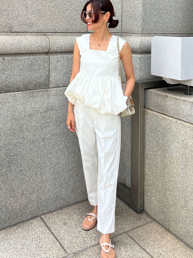 同素材のTOPSとのセットアップスタイルはもちろん、どんなスタイリングにも馴染み、オンオフ問わず幅広く活躍してくれます。