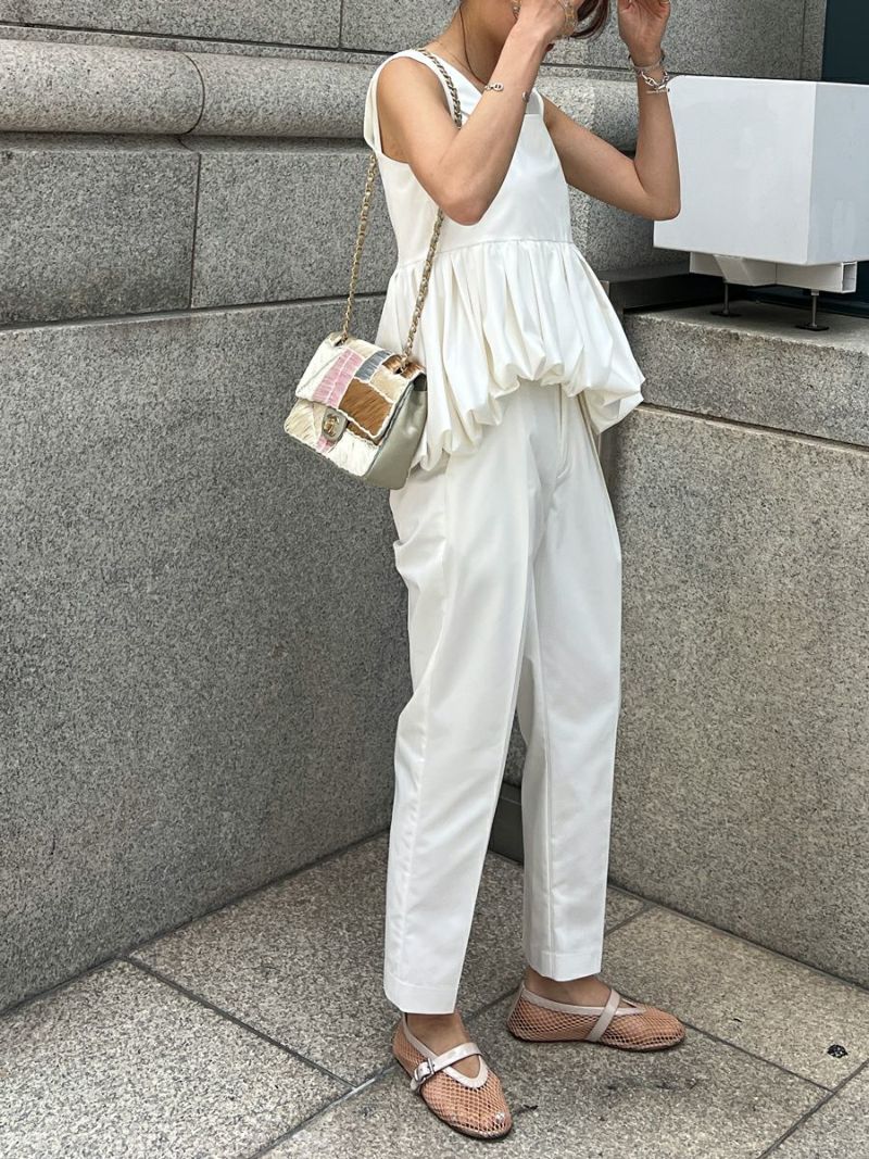 フィットし過ぎず体のラインをひろわない美しいシルエットでお召しいただけるよう履き心地の良さとラインの綺麗さを追求しました。