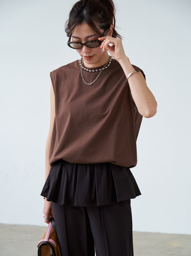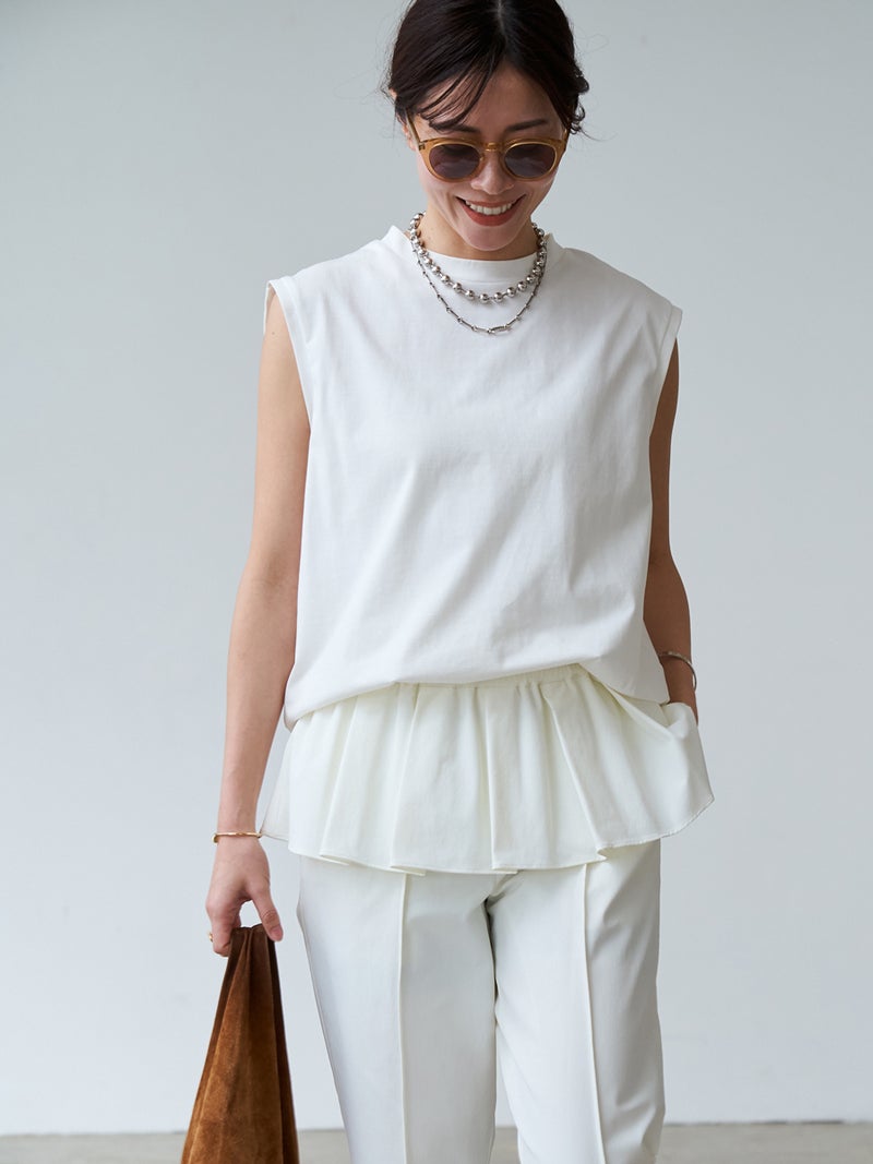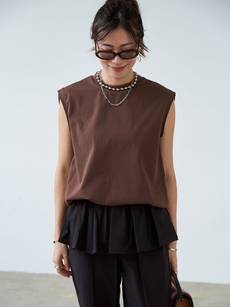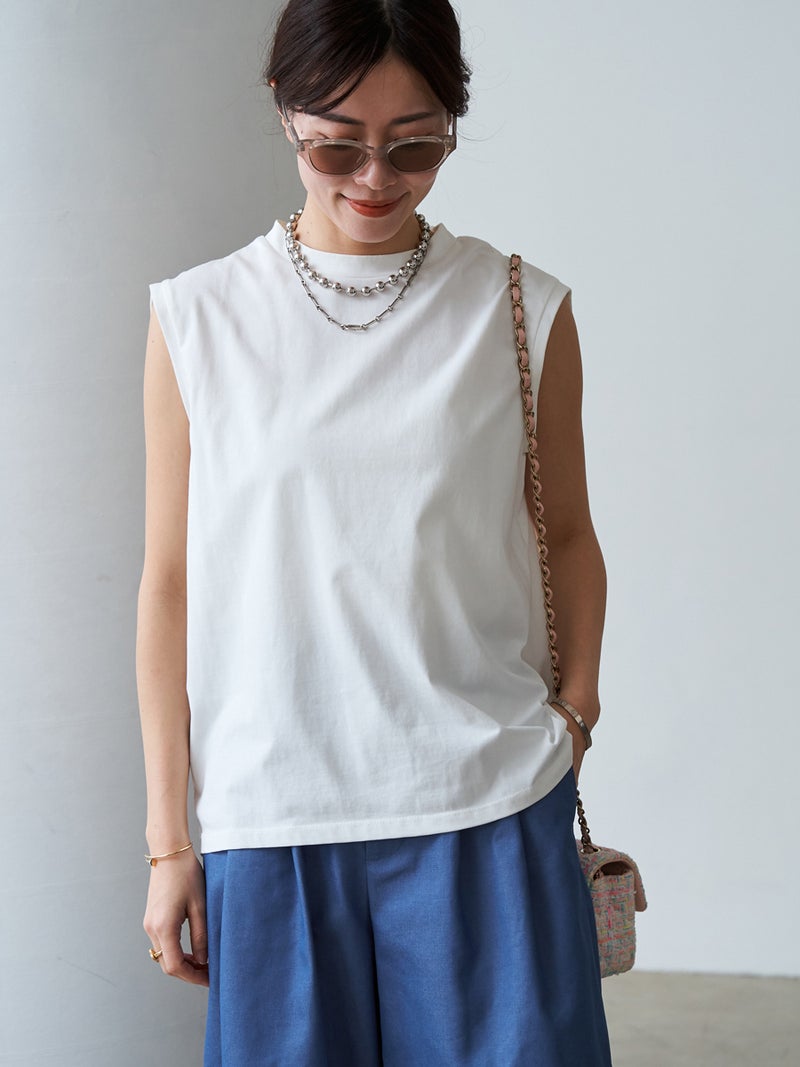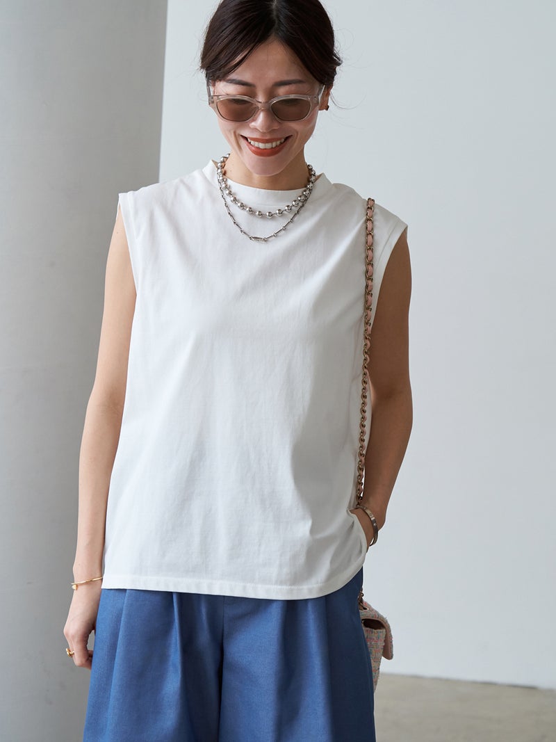bow.a定番のすっきりとして軽やかな印象のノースリーブトップス。