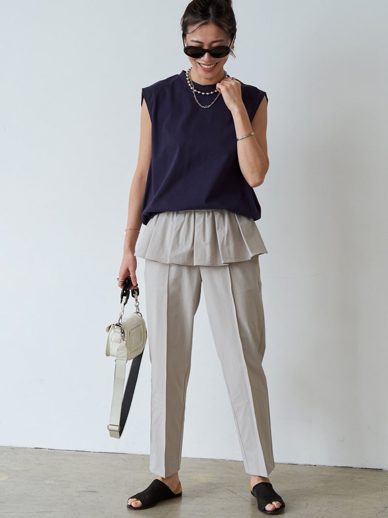 シンプルなデザインは、カラーパンツやスカートとも好相性。