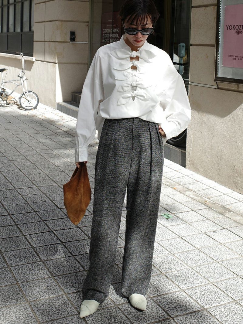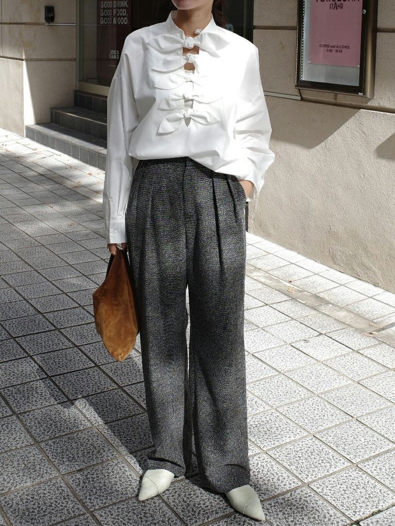 季節の装いを静かに引き立ててくれる、上品なツイードパンツです。