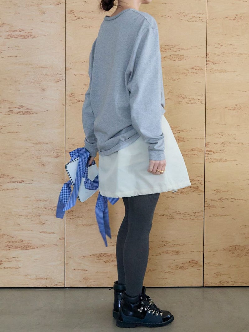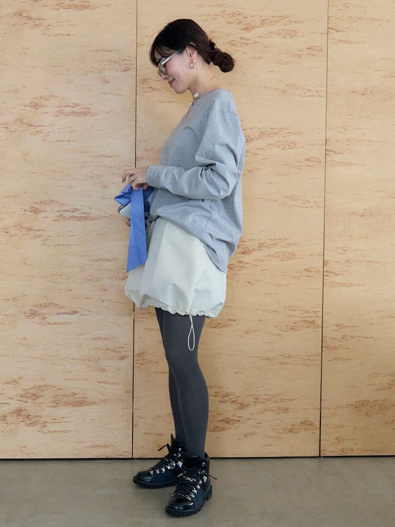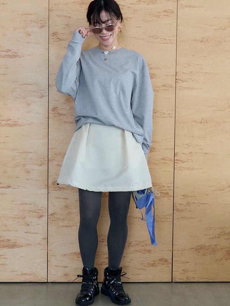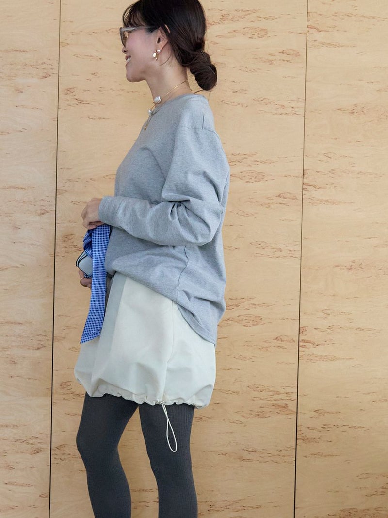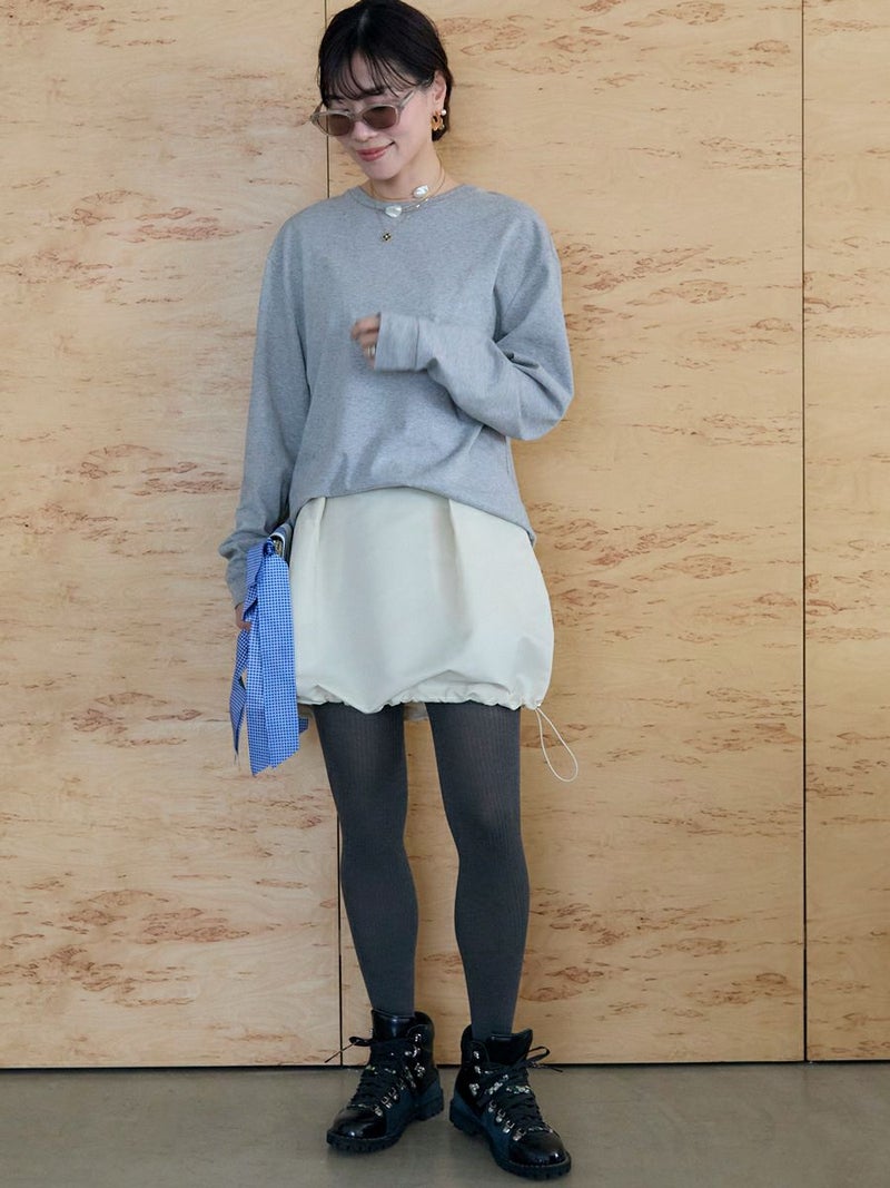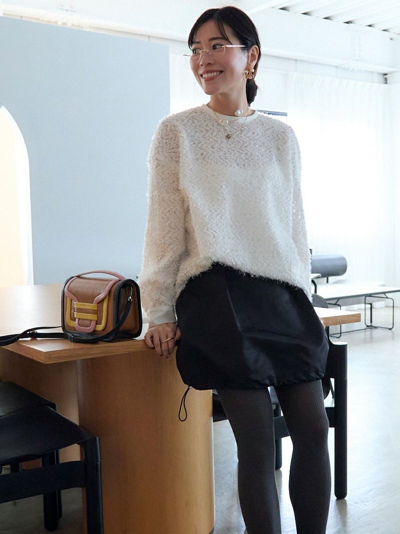ニットやブラウスとのコーディネートで品よくまとめたり、シンプルなトップスと合わせても上質な素材感が際立つ、大人のワードローブにふさわしいミニスカートです。