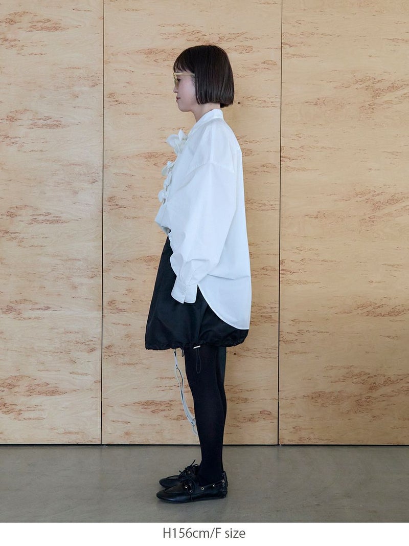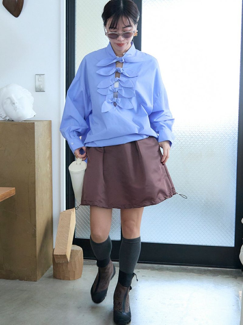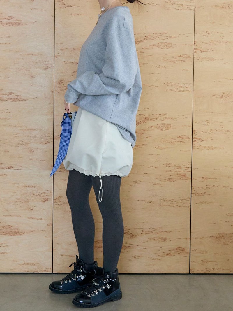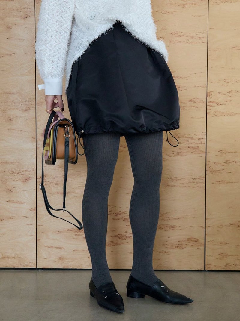 コードを絞ると、優しい丸みを帯びたバルーンシルエットへ。