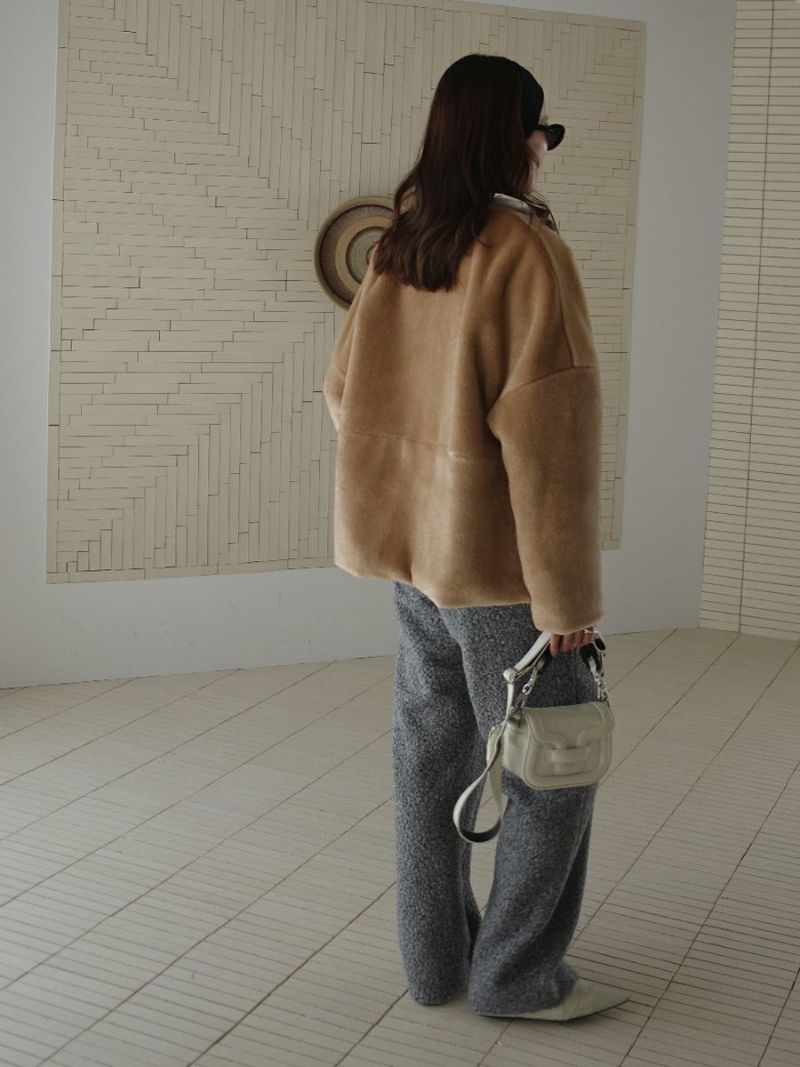 柔らかく上質な肌触りのフェイクファー素材を仕様したジャケット。