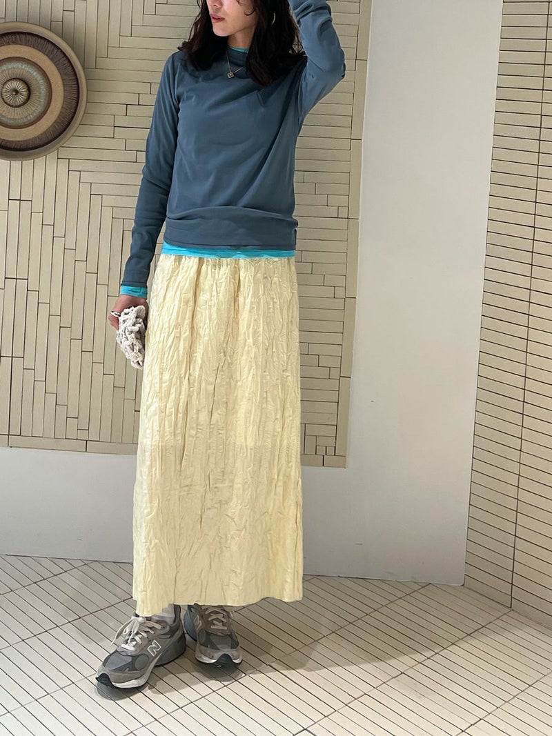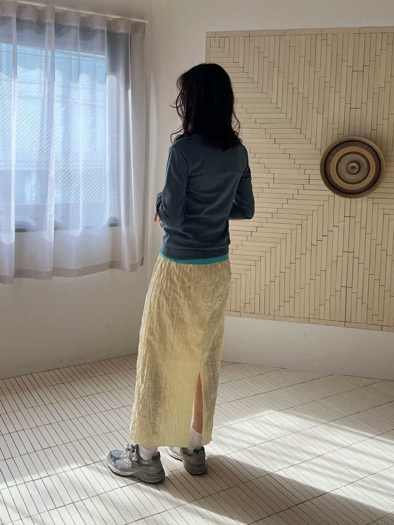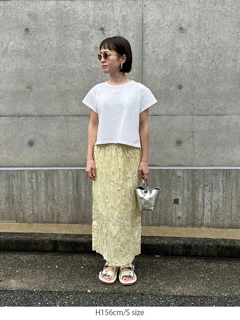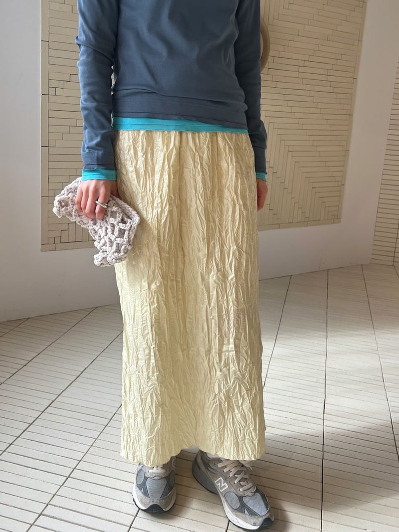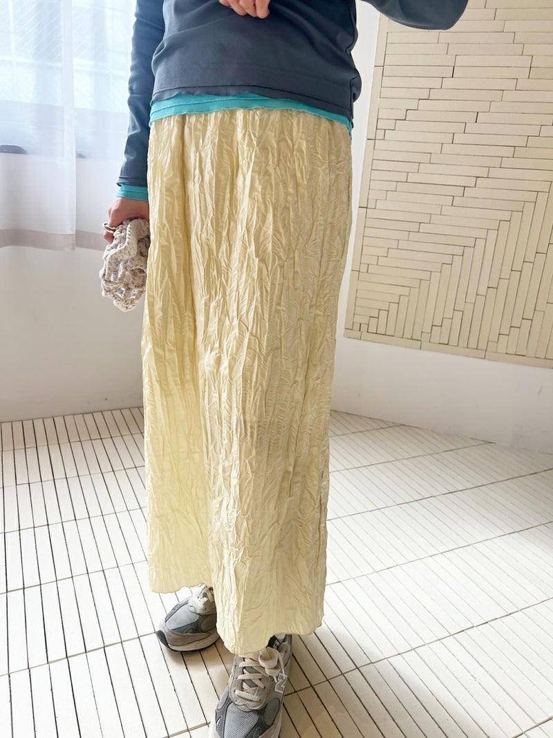 ワッシャー加工によるランダムな凹凸感が程よく抜け感を演出してくれるスカート。