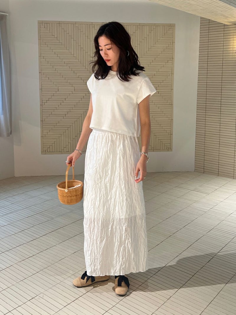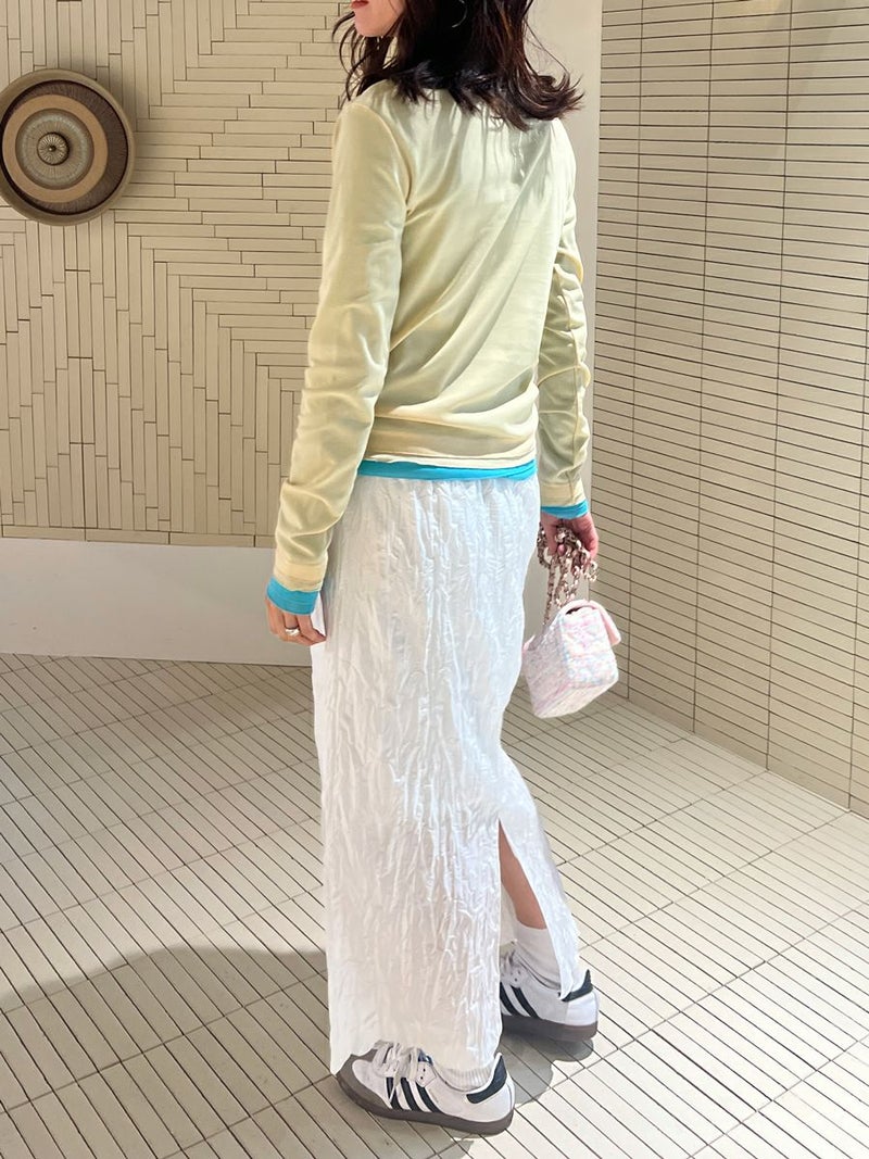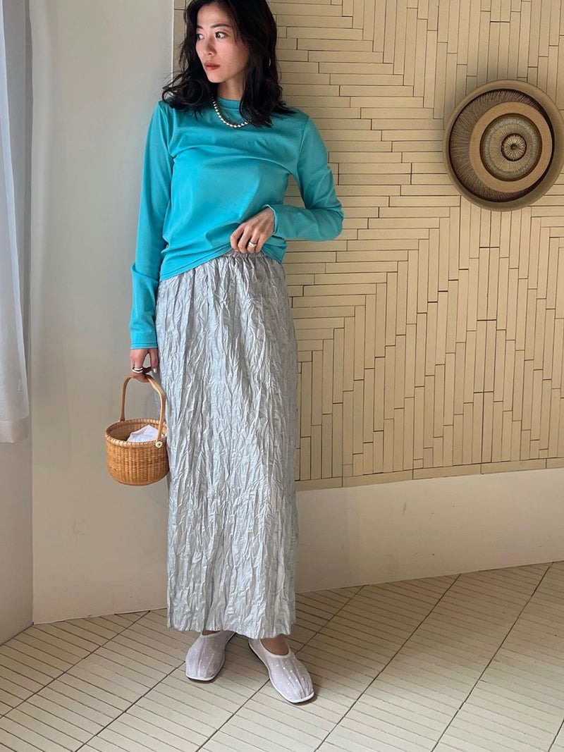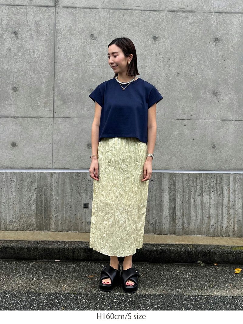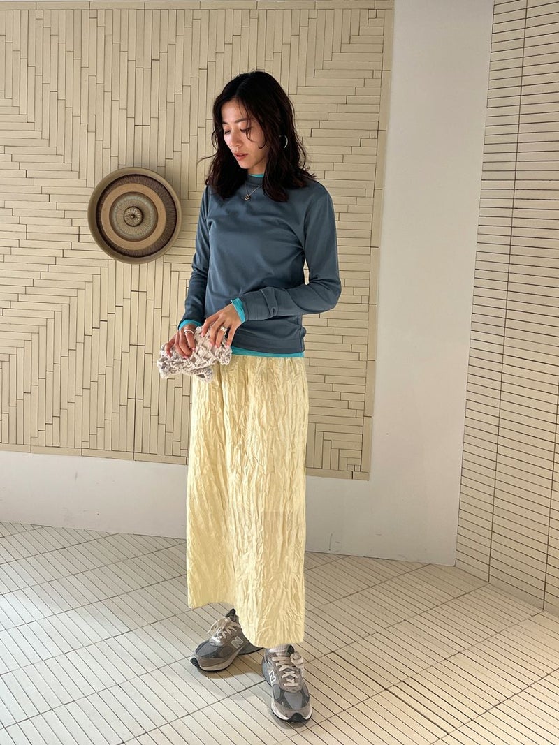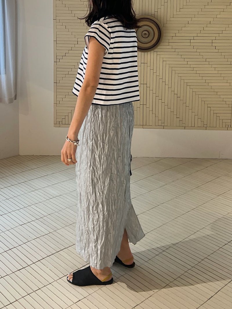 ワッシャー加工によるランダムな凹凸感が程よく抜け感を演出してくれるスカート。