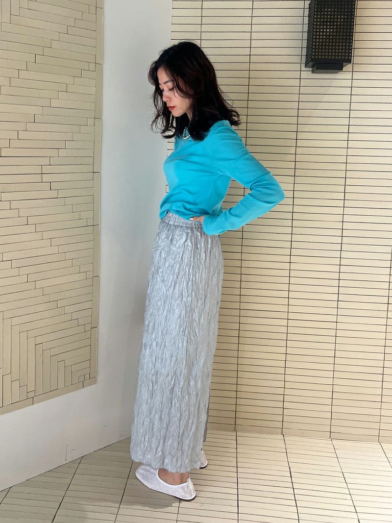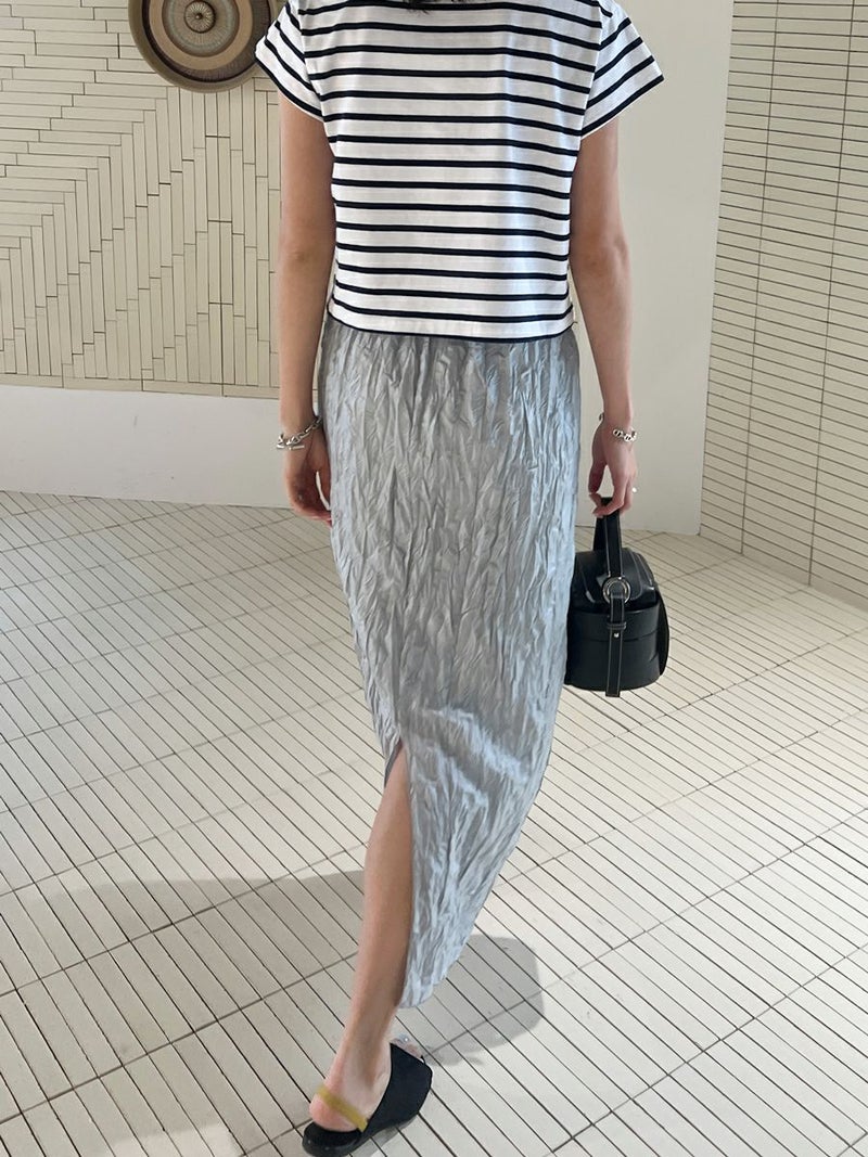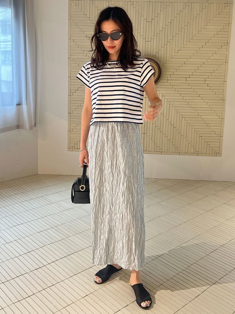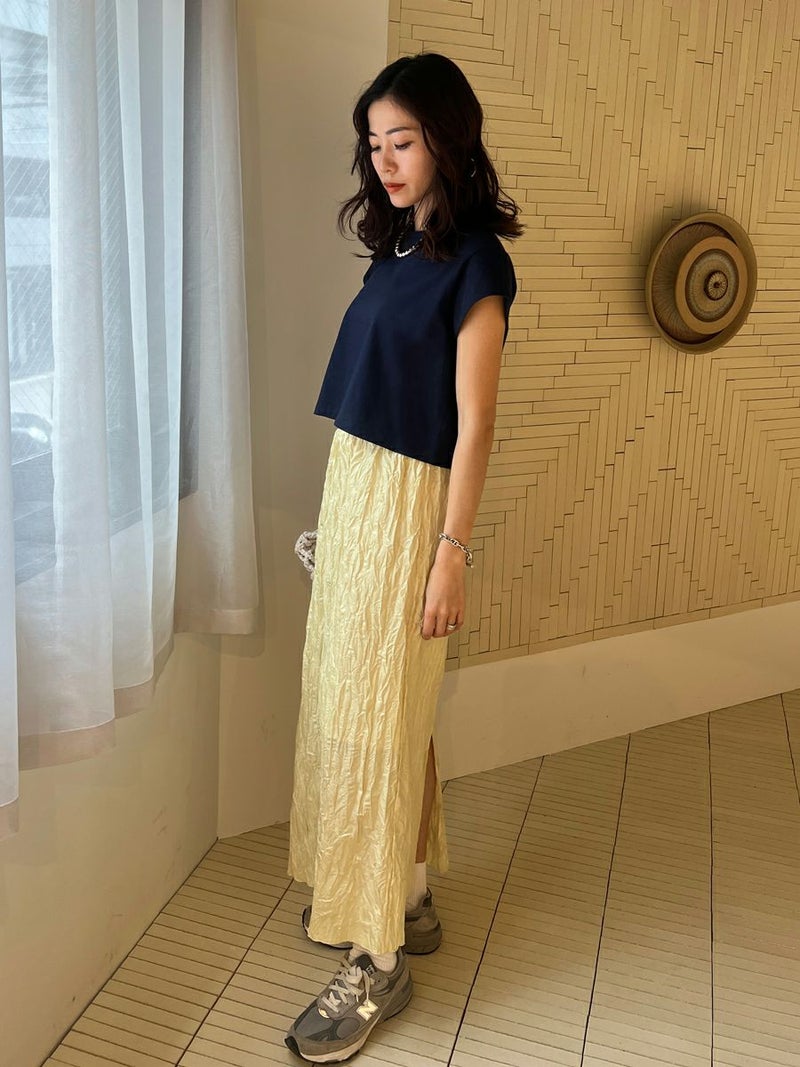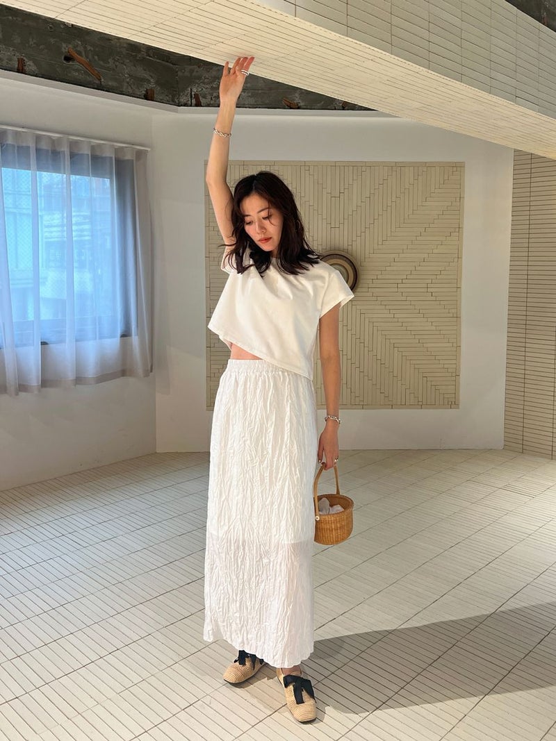 ワッシャー加工によるランダムな凹凸感が程よく抜け感を演出してくれるスカート。