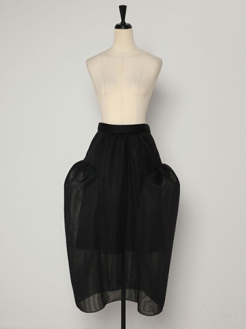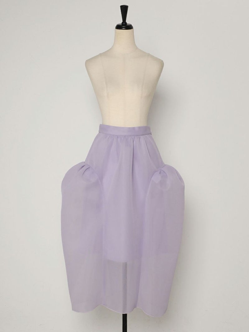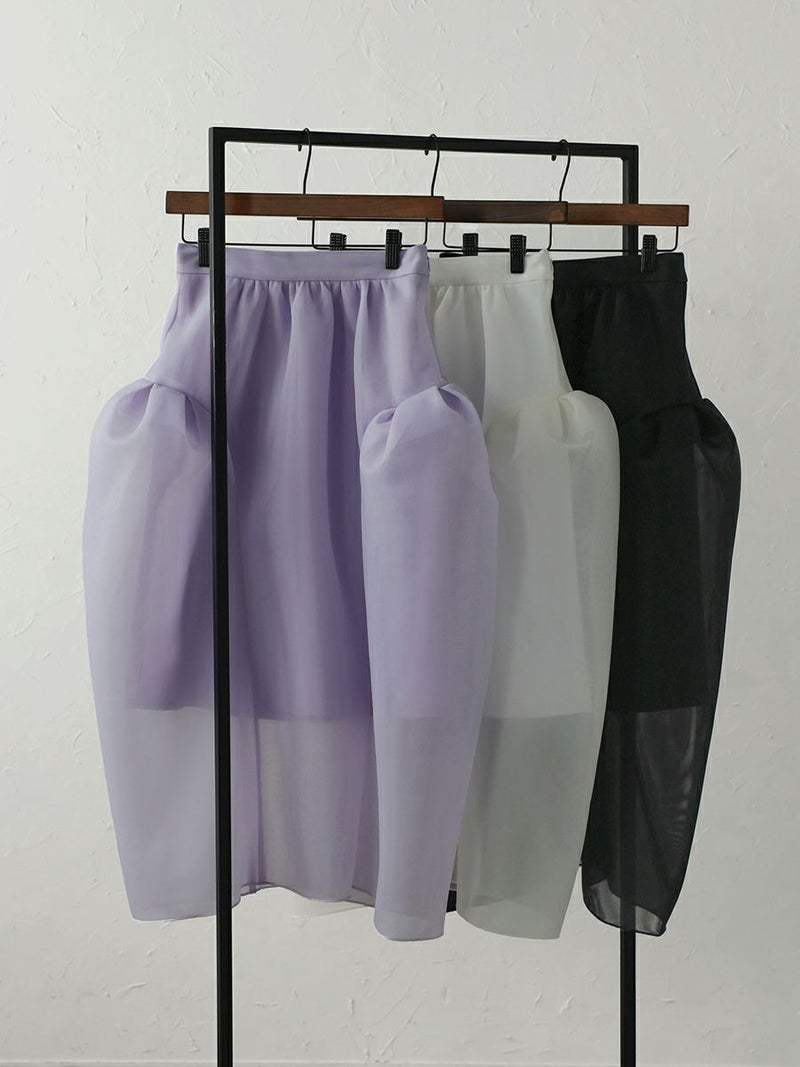 シアー感のある軽くてハリ感が特徴的なダブルラッセル素材を使用したボリュームシルエットが印象的なスカート。