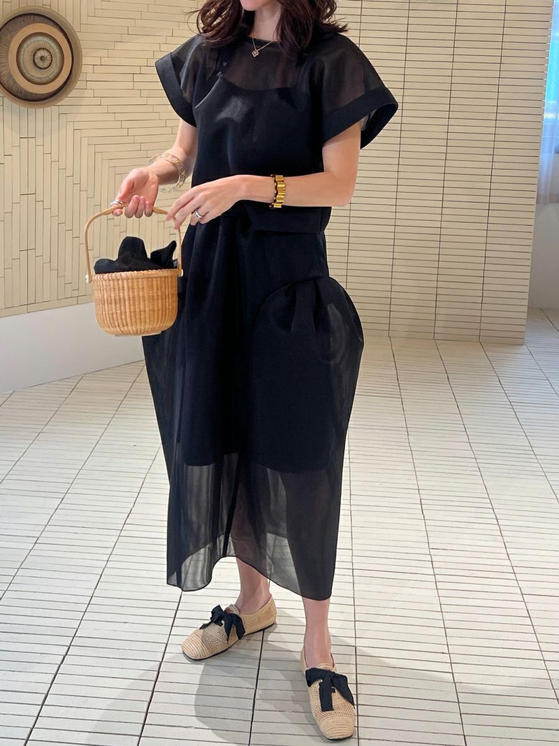 スウィートな雰囲気にシアー素材を使用する事でモードな印象に。