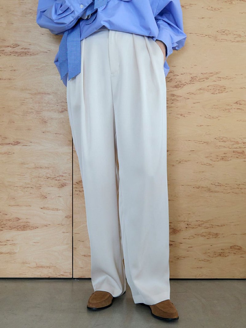フロントに施した深めの2タックや絶妙なワイドシルエットがアーバンムード漂うスマートなリラックススタイルを演出。