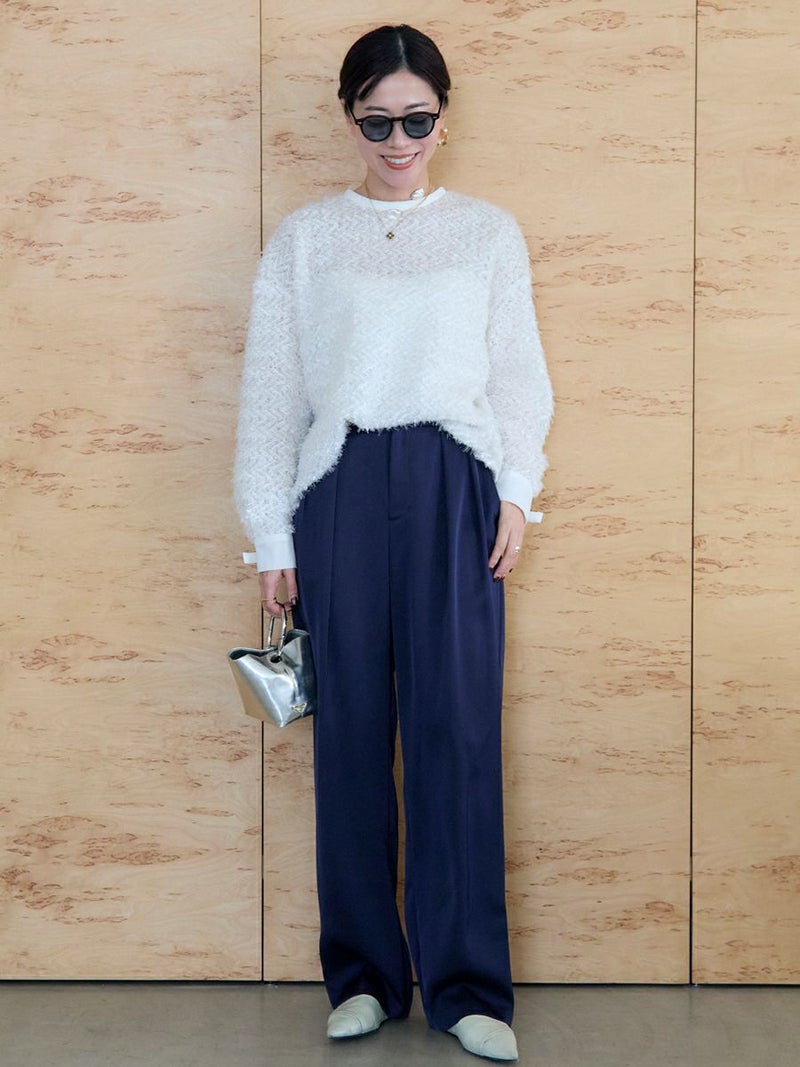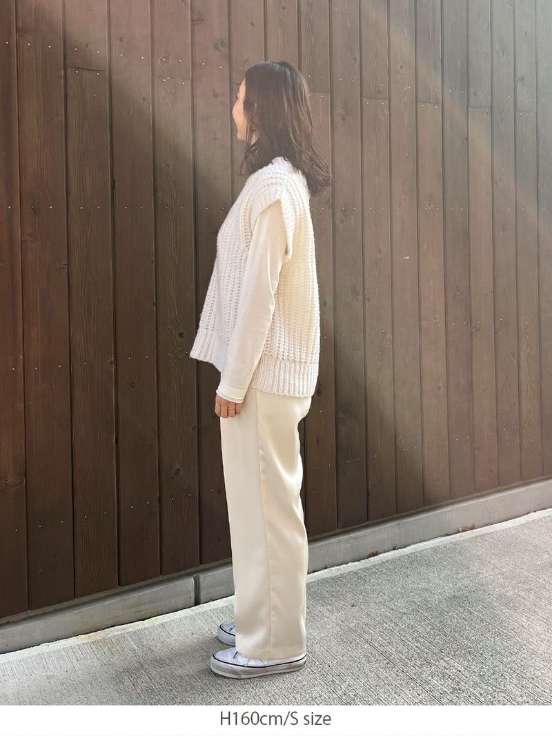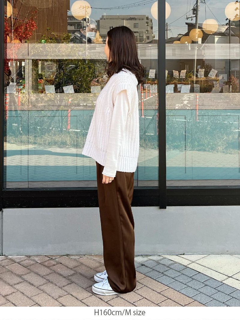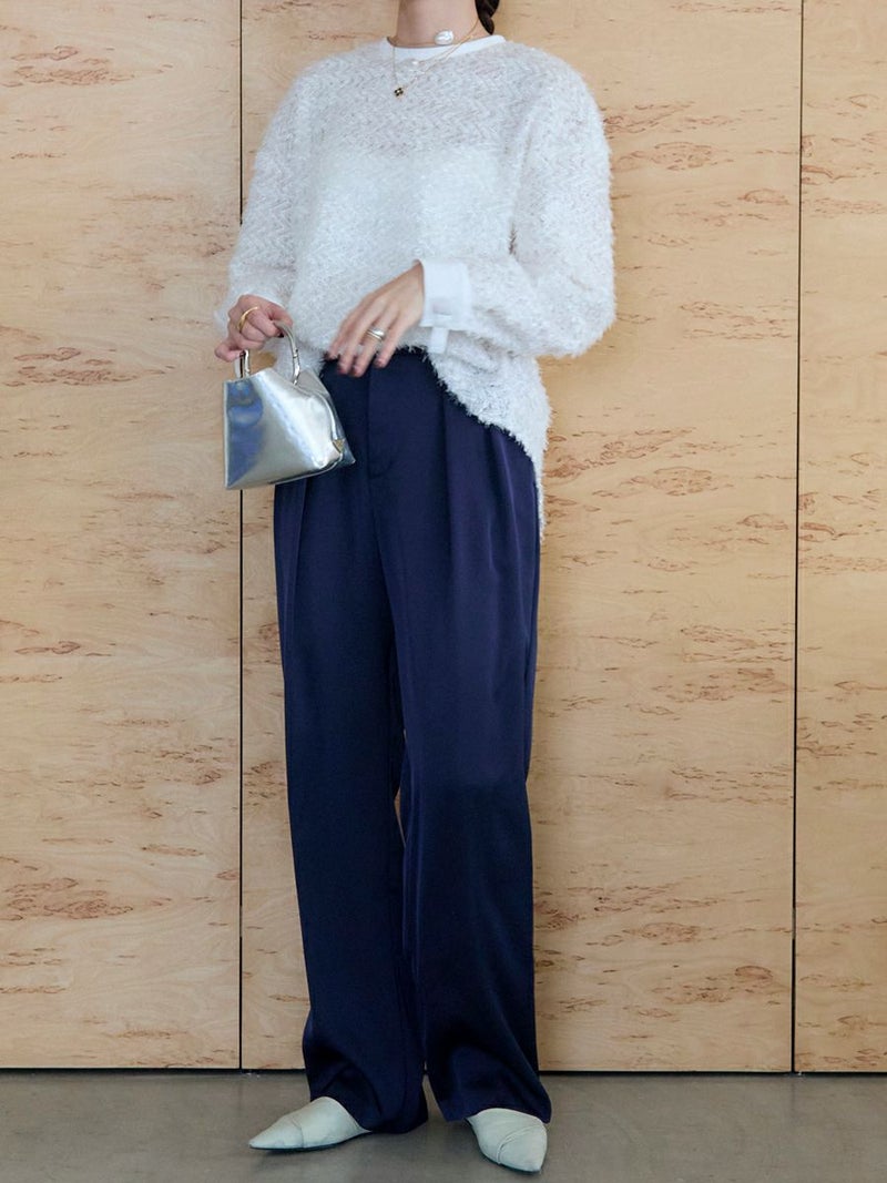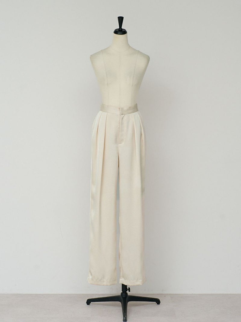 微光沢感が上品な風合いのサテンパンツ。
