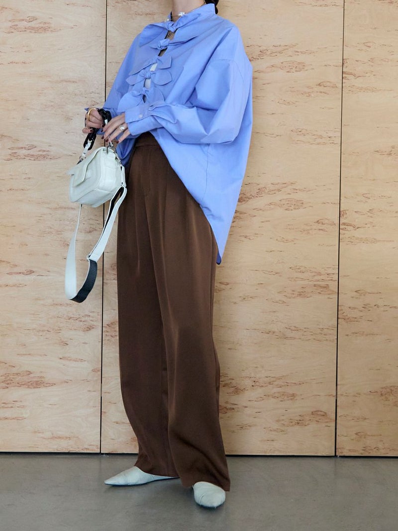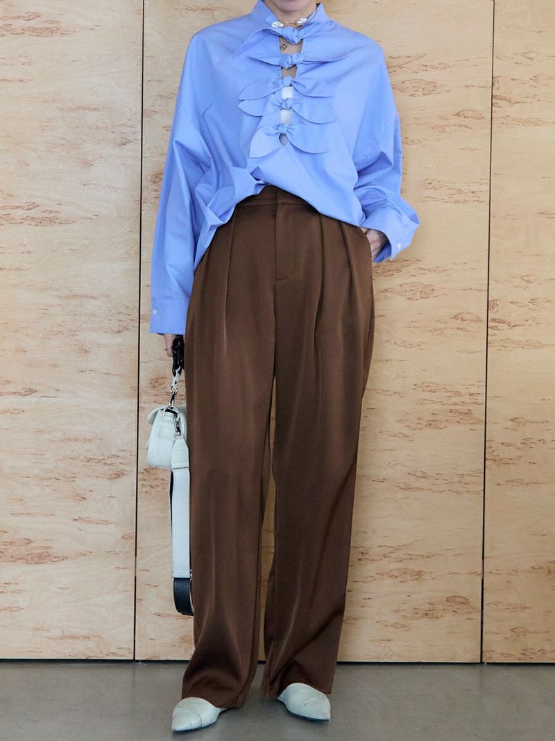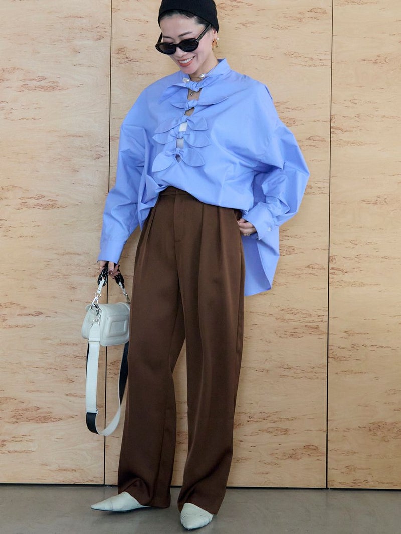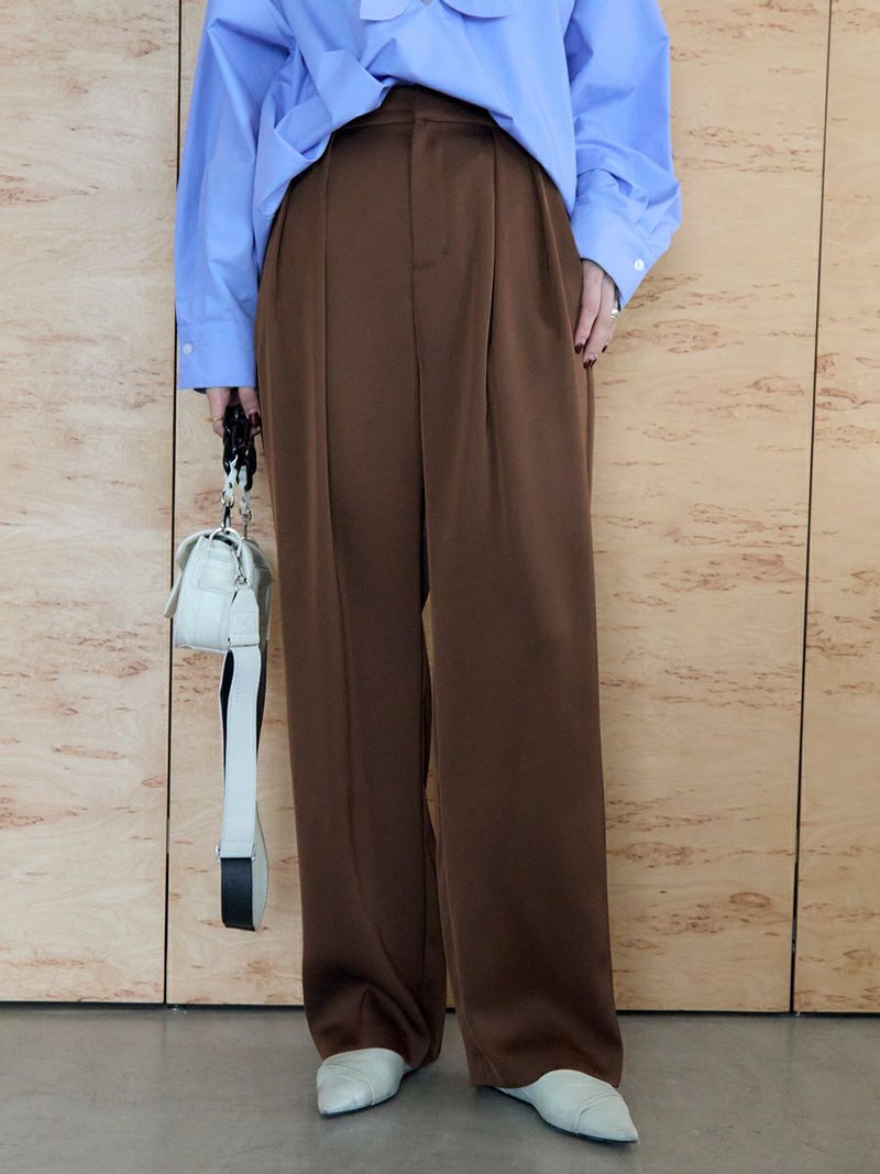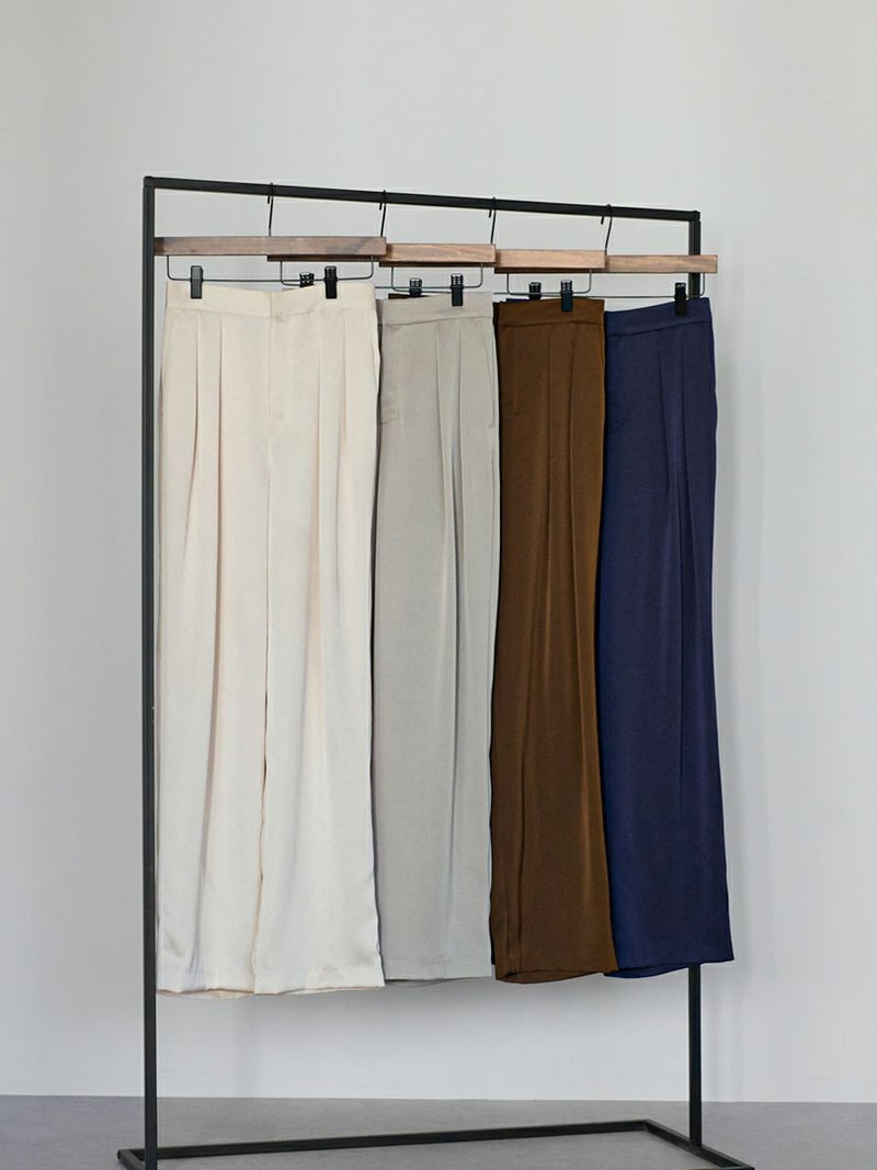大好評のDOUBLE TUCK SATIN PANTS に新色ブラウンが追加されて再登場。
