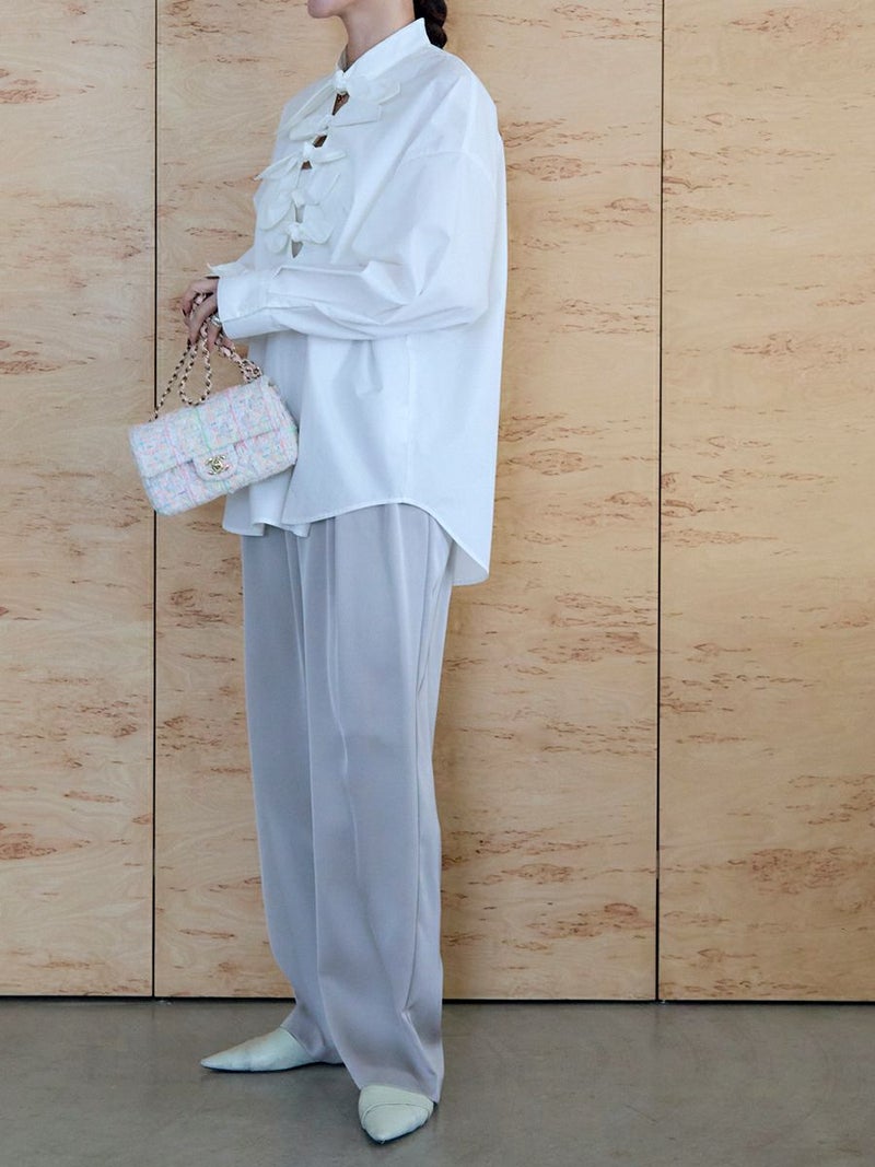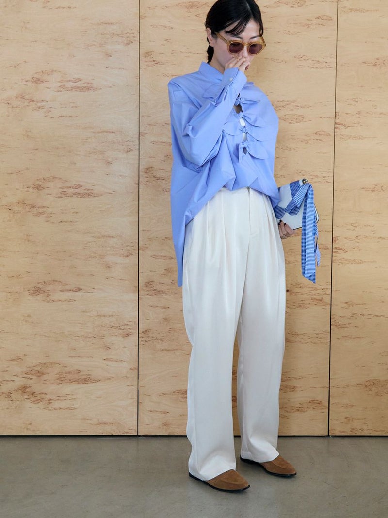 カジュアルなスニーカー合わせから、パンプスやローファーを合わせたスタイルまでどんなスタイルもこなれ感のある着こなしになるシーズン問わず着用して頂けるパンツです。
