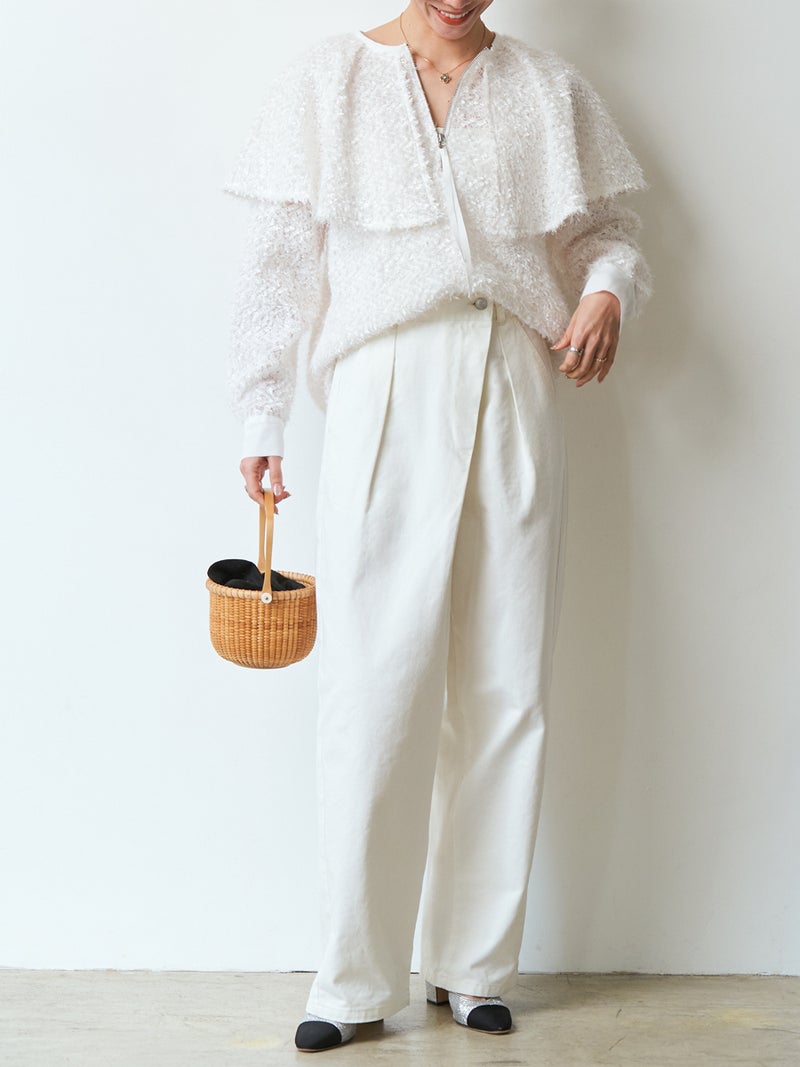 ご好評をいただいている DENIM TUCK PANTS に、クリーンで洗練された印象の新色 ホワイト が仲間入りしました。