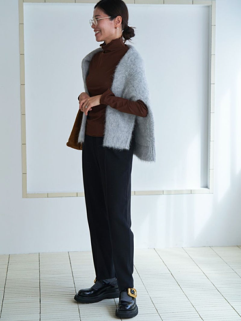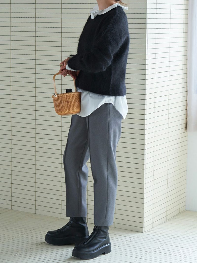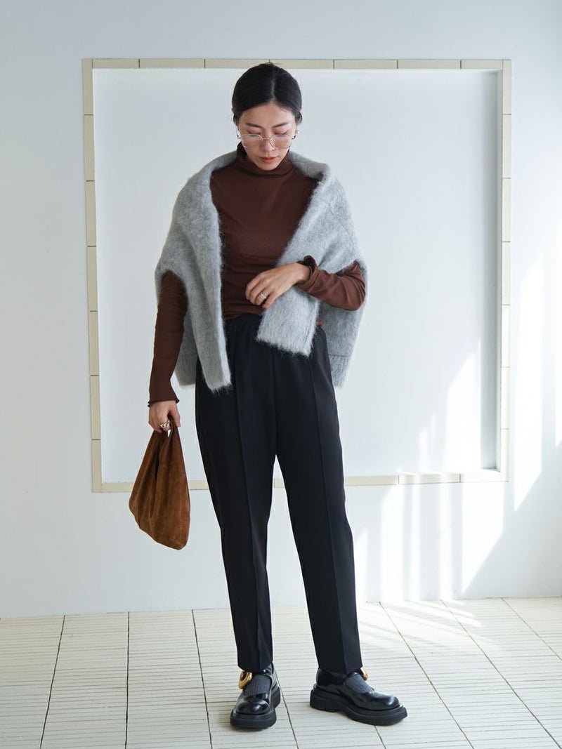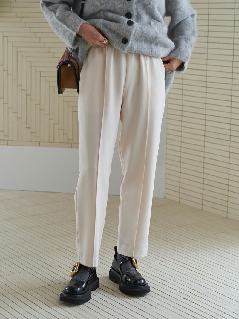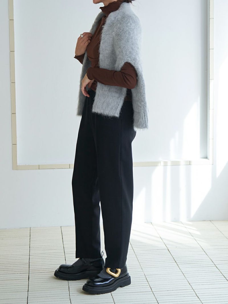 羽毛感のある糸を織り込み、独特のウォームタッチを表現したテーパードパンツ。