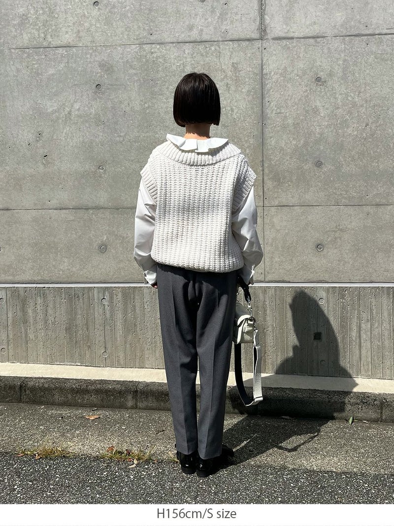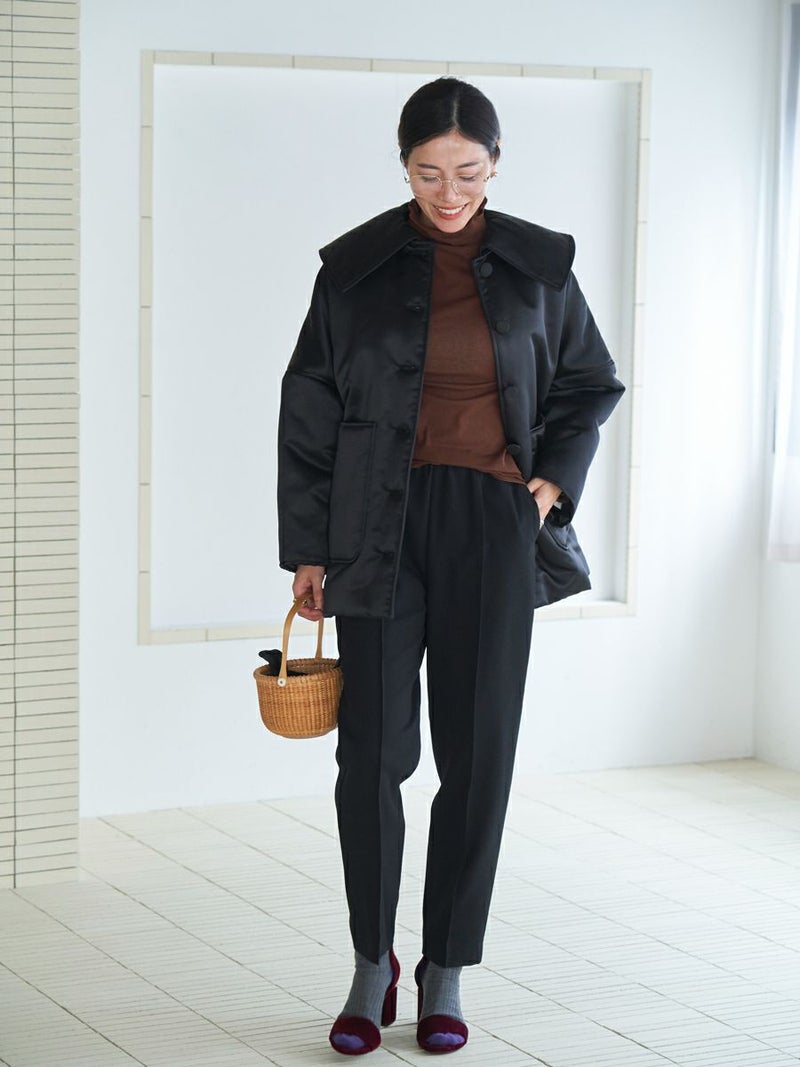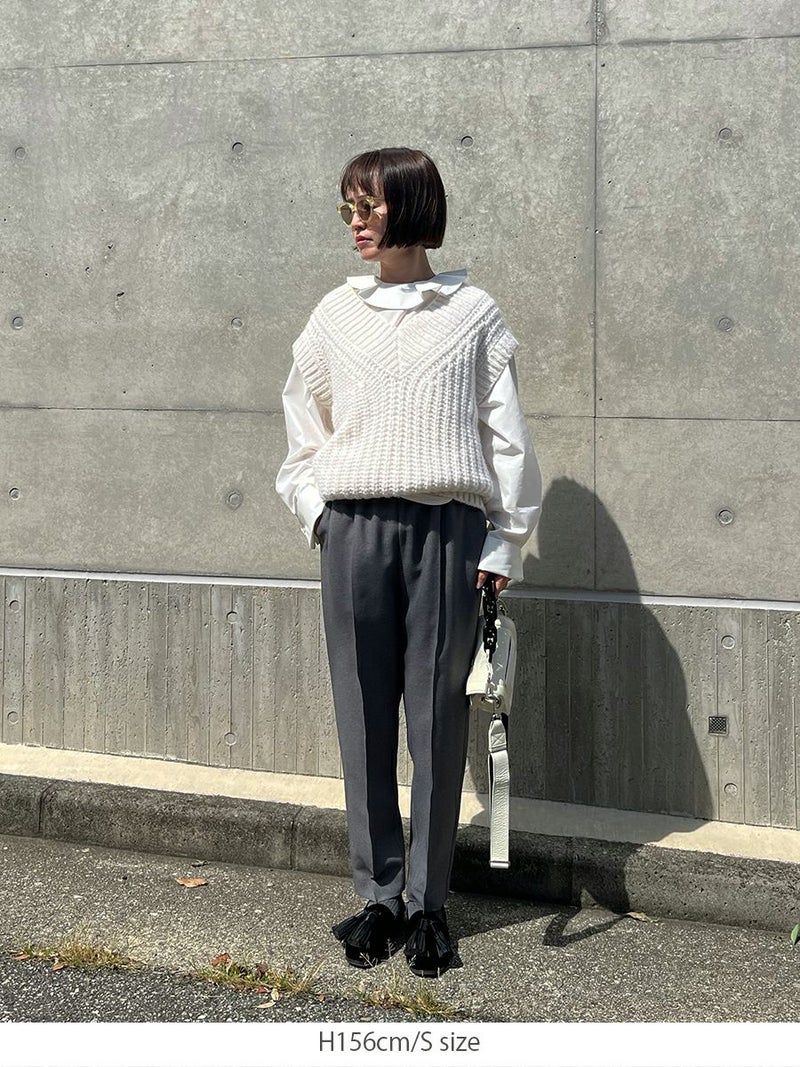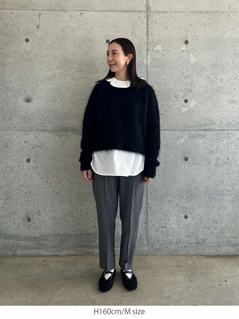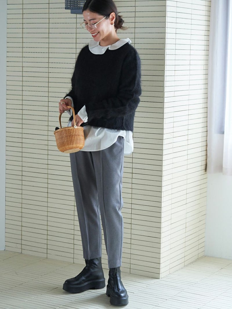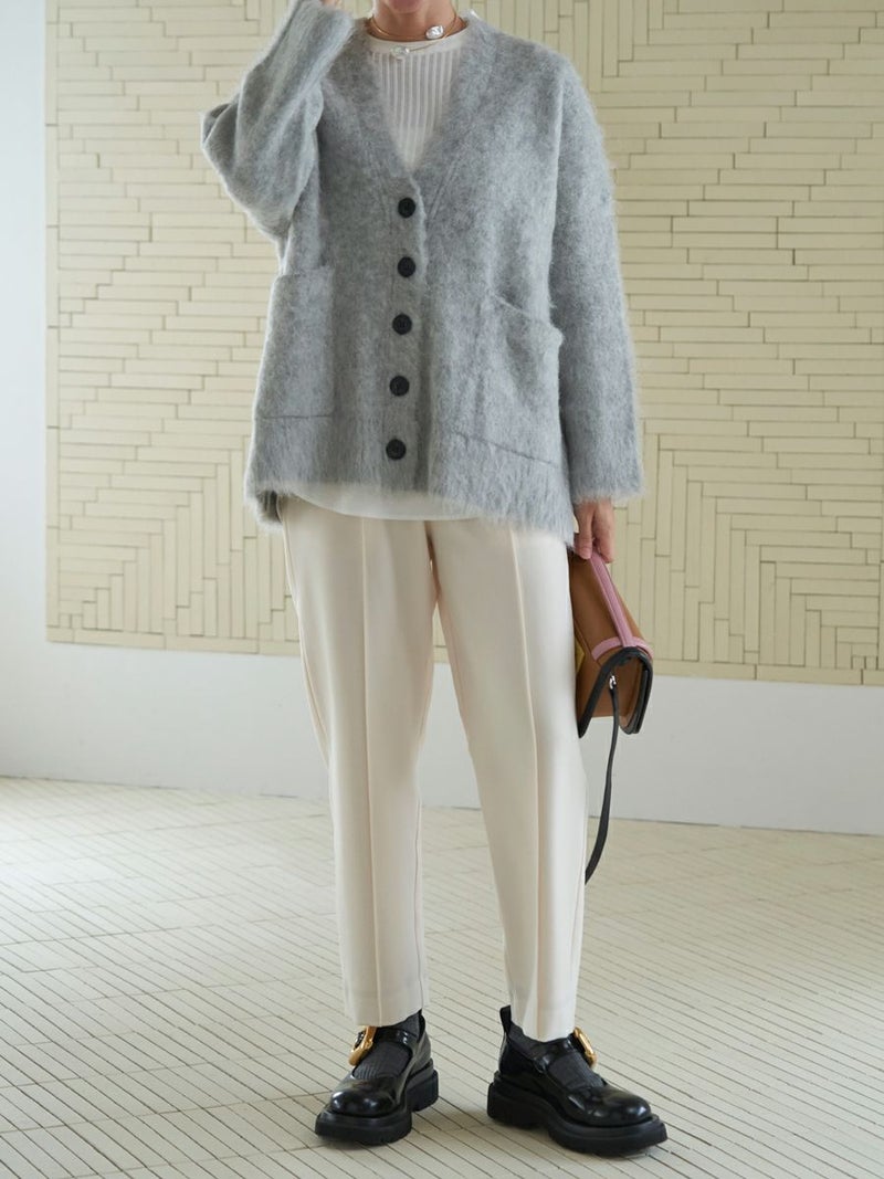 羽毛感のある糸を織り込み、独特のウォームタッチを表現したテーパードパンツ。