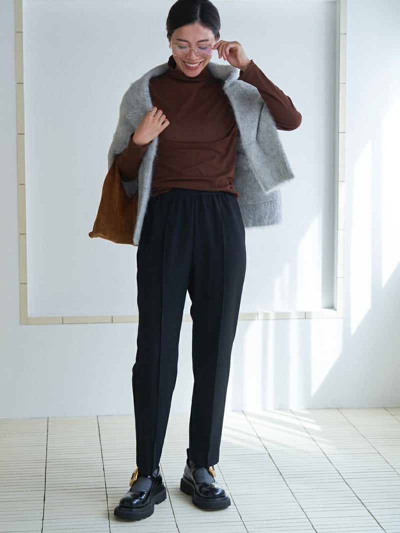 フィットし過ぎず体のラインをひろわない美しいシルエットでお召しいただけるよう履き心地の良さとラインの綺麗さを追求しました。
