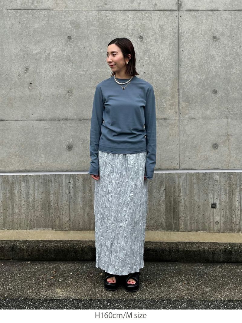 ワッシャー加工によるランダムな凹凸感が程よく抜け感を演出してくれるスカート。