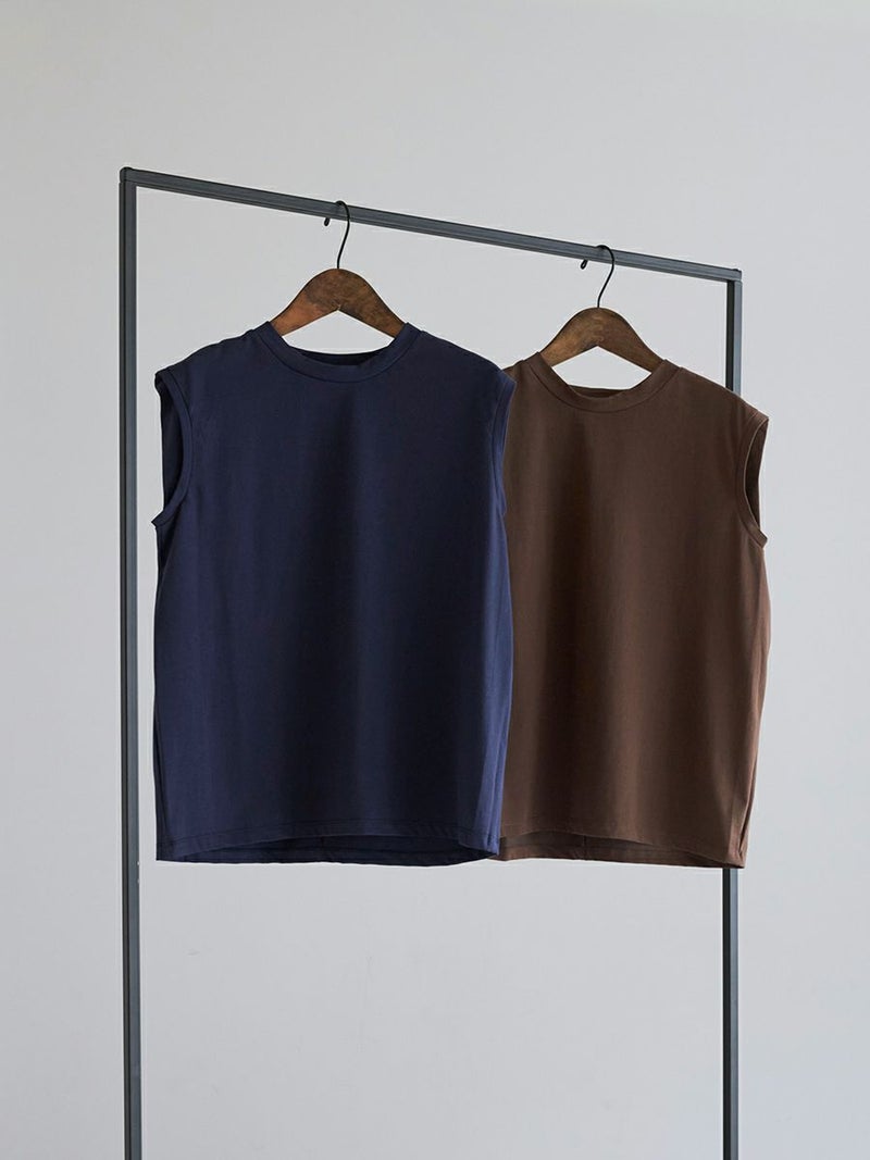 bow.a定番のすっきりとして軽やかな印象のノースリーブトップスに秋を意識した新色が追加されました。