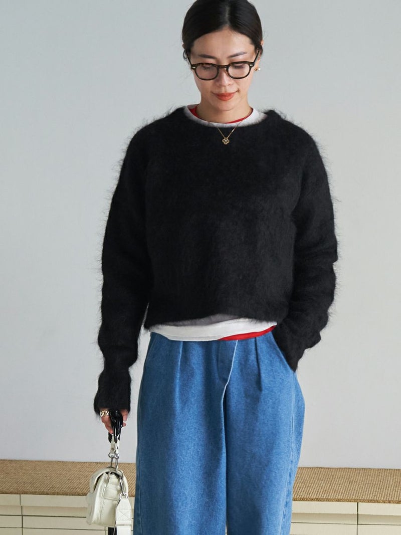 温かみのある表情がシーズンムードたっぷりのモヘアニット。