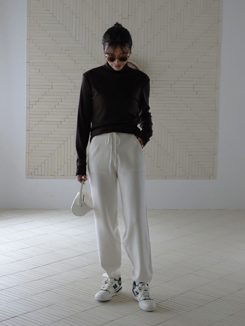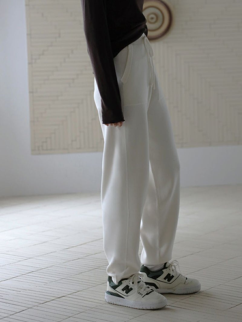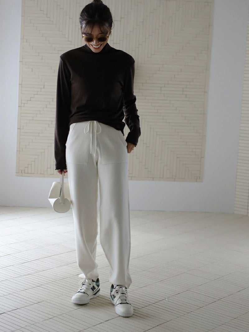 軽くてあたたかなニット素材を使用した上質な大人のニットパンツ。