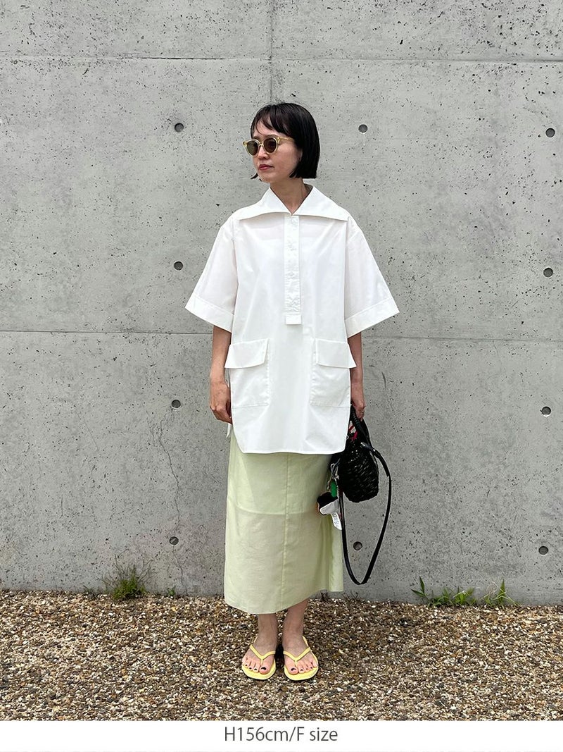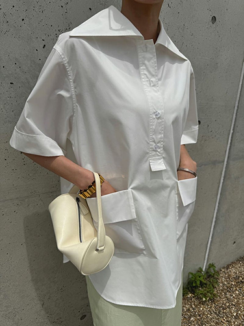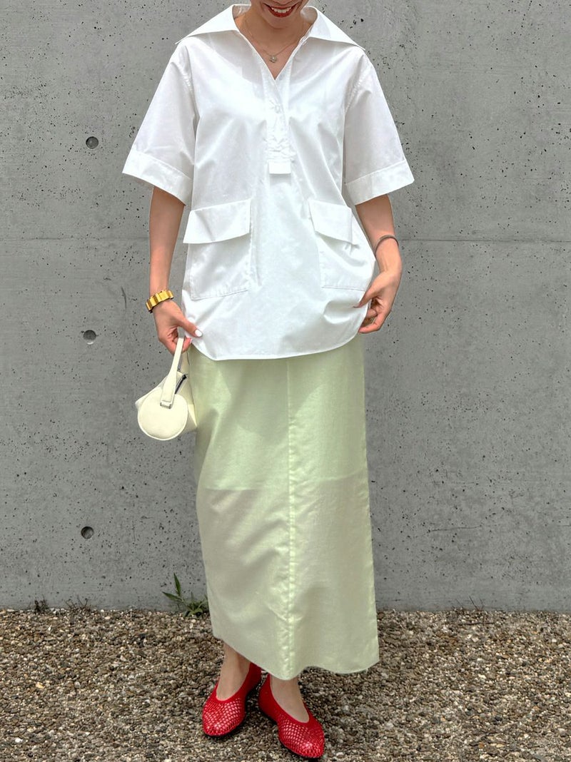 さまざまなボトムスと相性が良く、一枚で様になるシャツです。