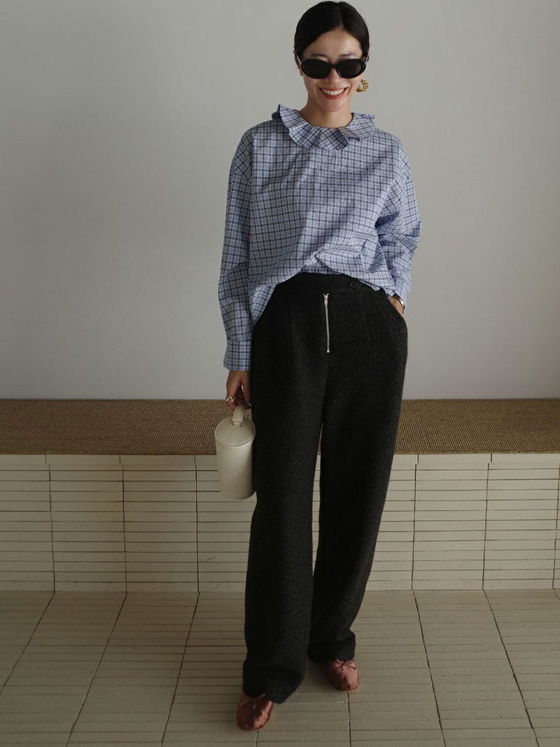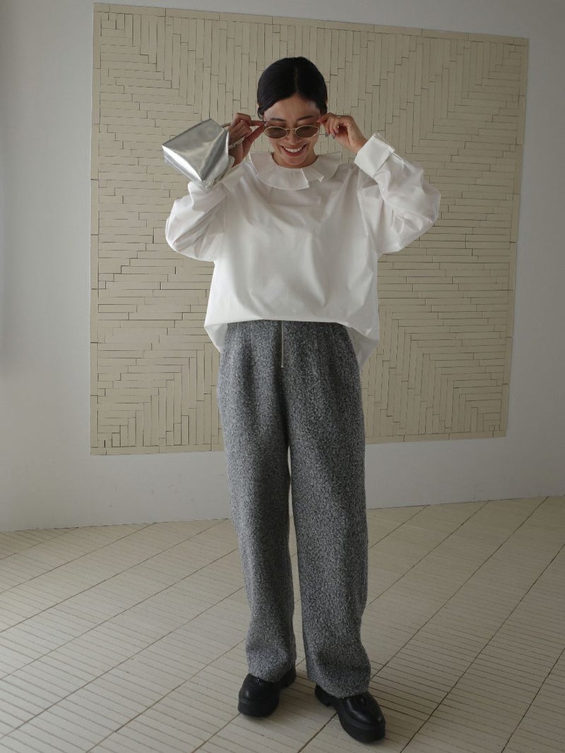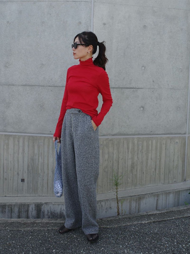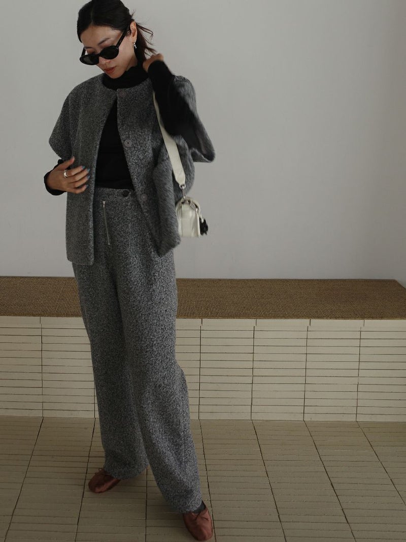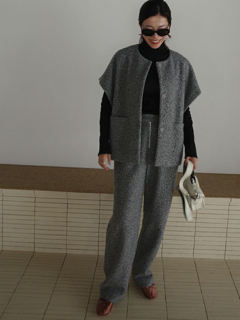 同素材ベストとのセットアップはもちろん、秋冬の定番アイテムとも合わせやすく、洗練されたスタイルが叶います。
