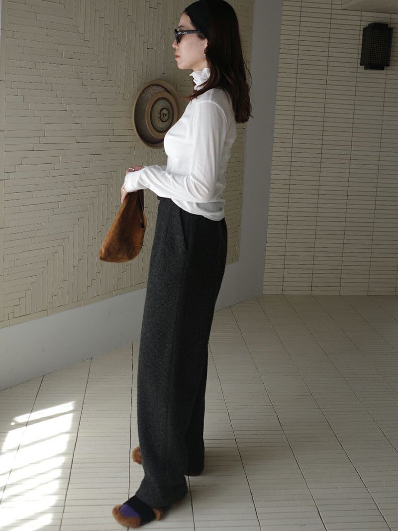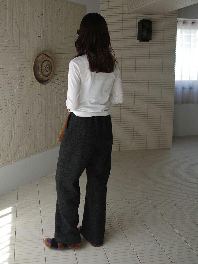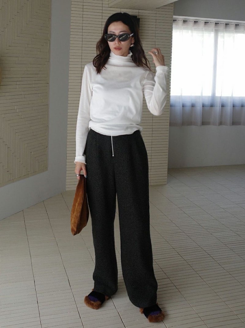 軽さと温かさを兼ね合わせた秋冬にぴったりな生地感が魅力のパンツ。